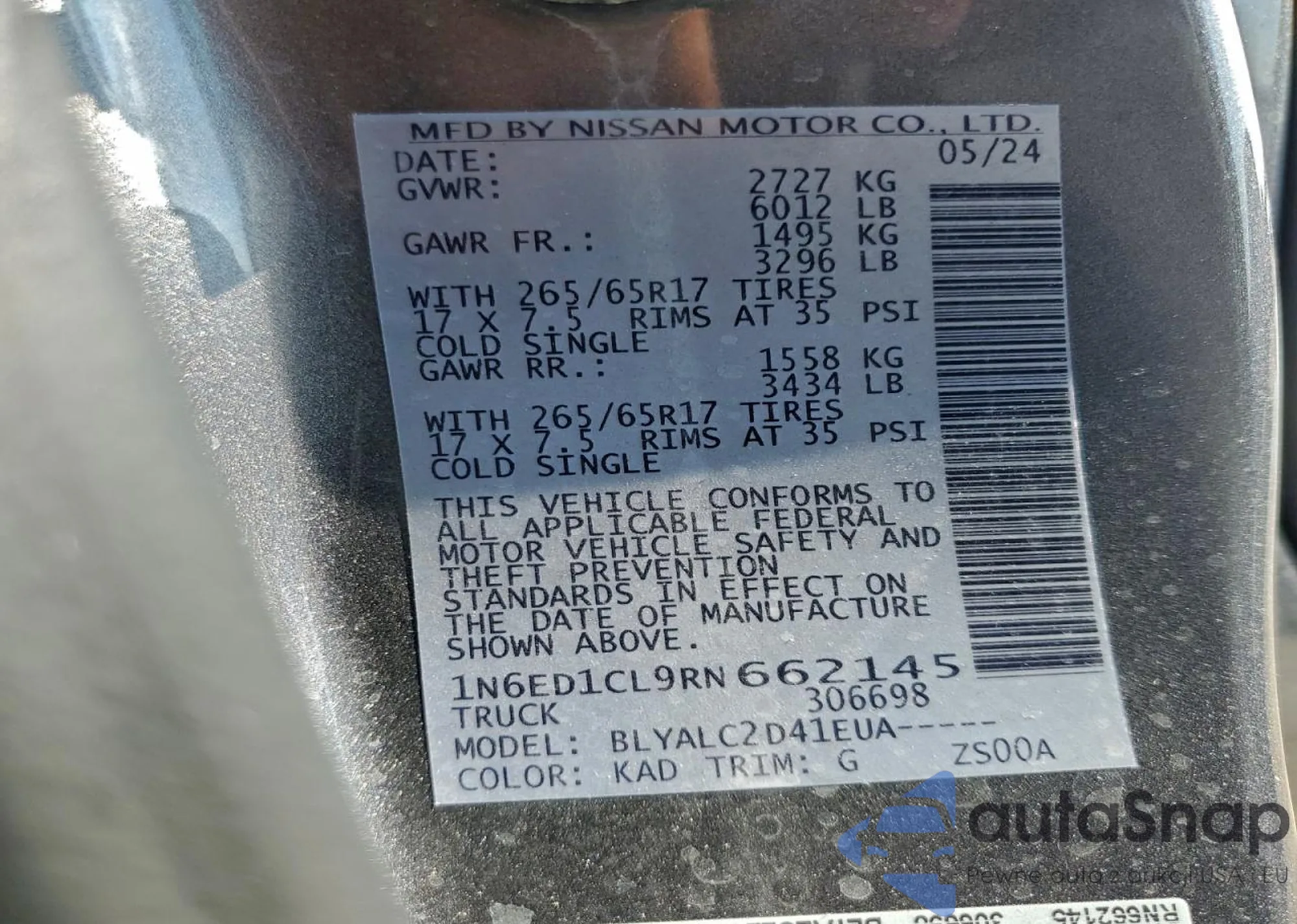 • VIN 1N6ED1CL9RN662145