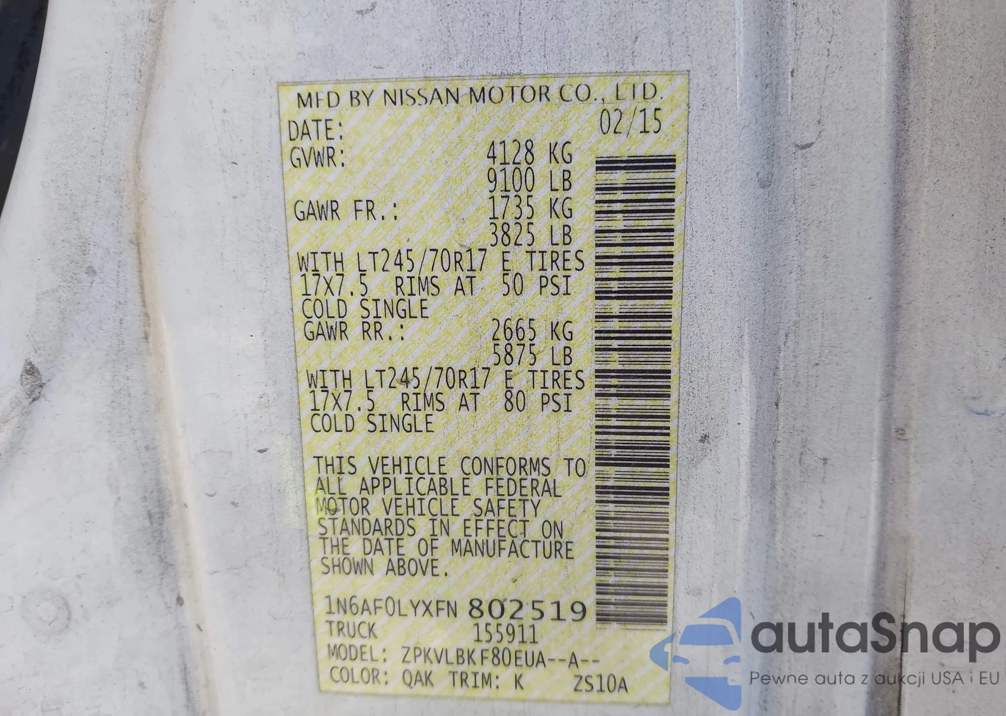 LOT: 43930464 VIN: 1N6AF0LYXFN802519