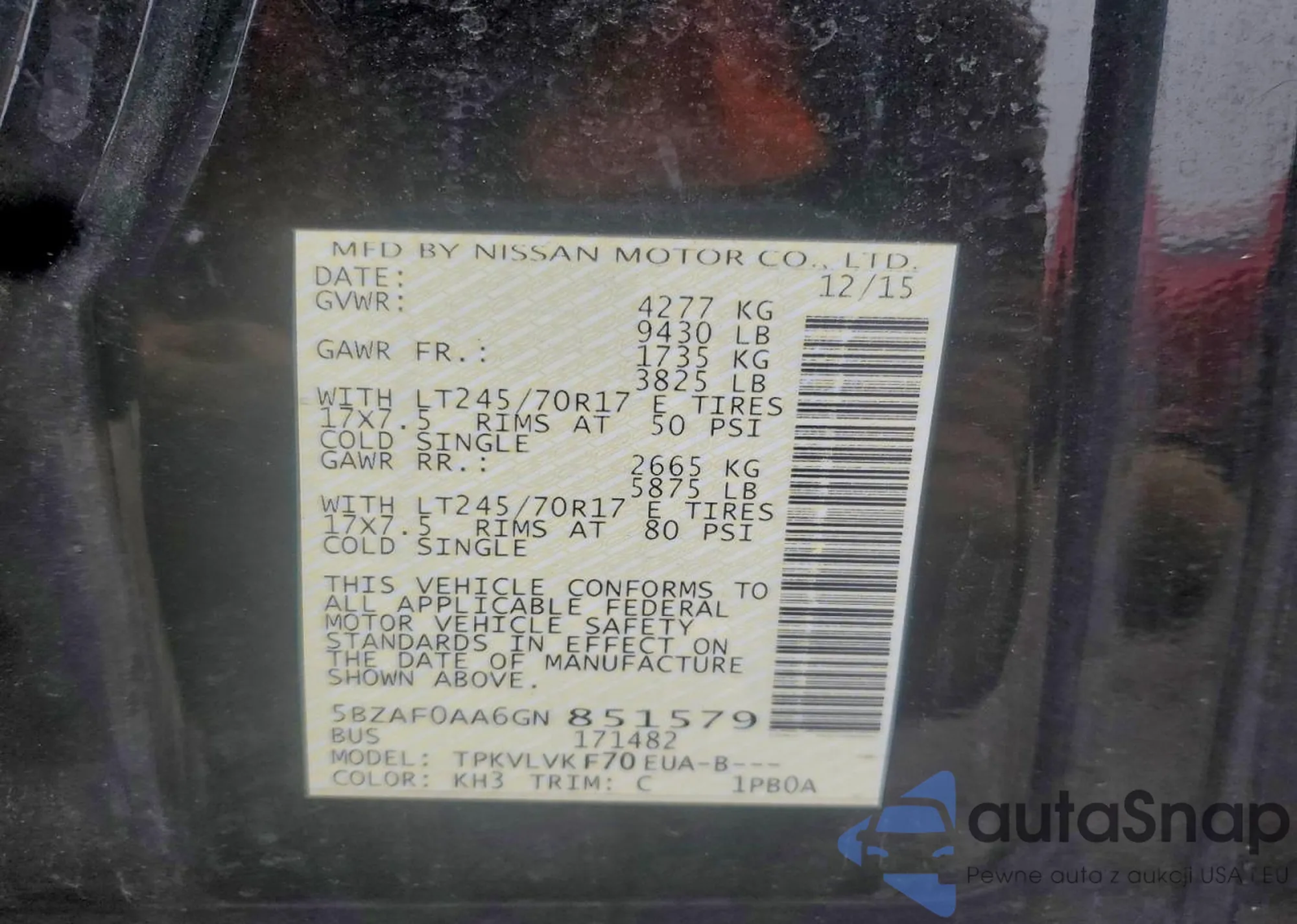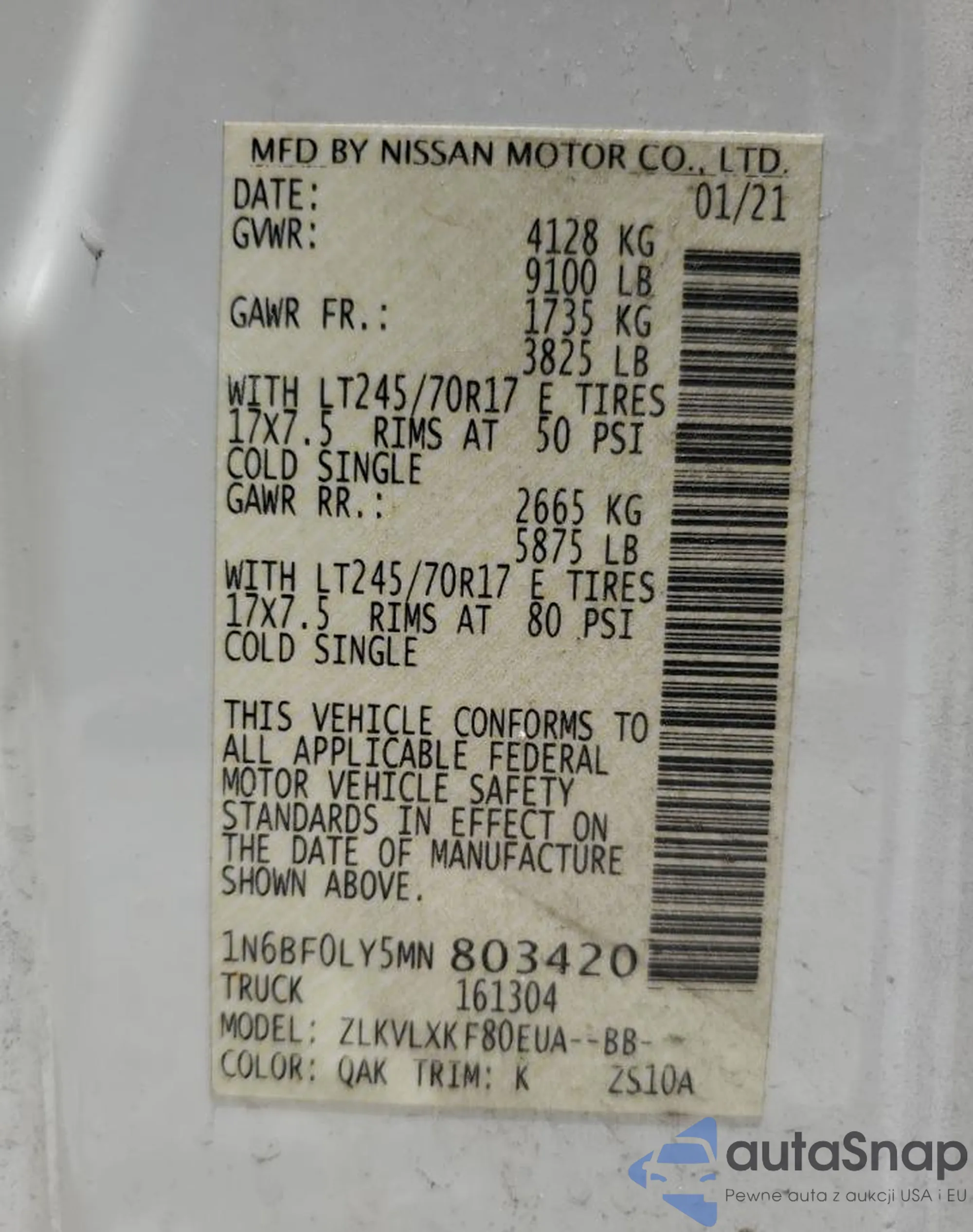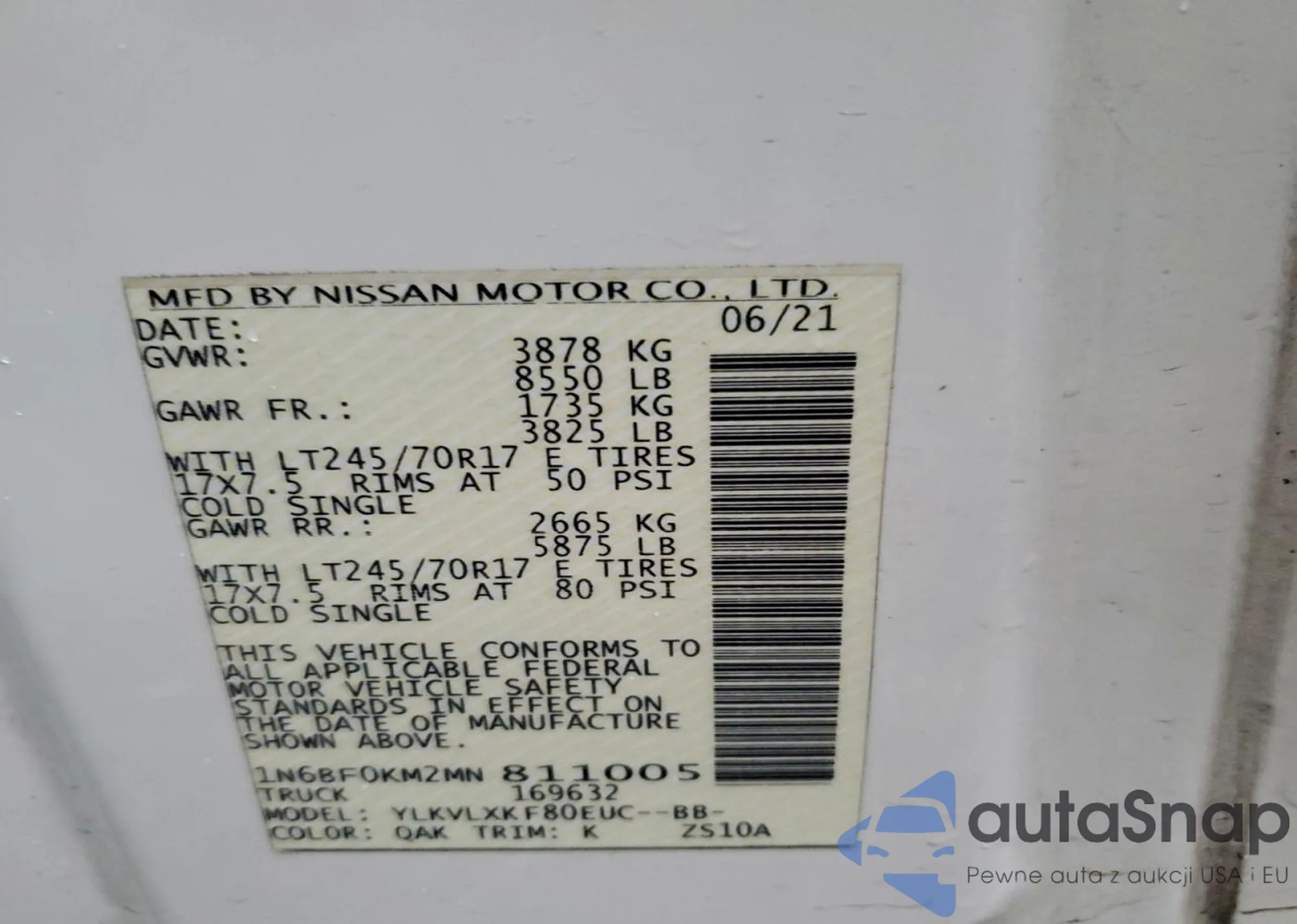 • VIN 1N6BF0LY5MN803420