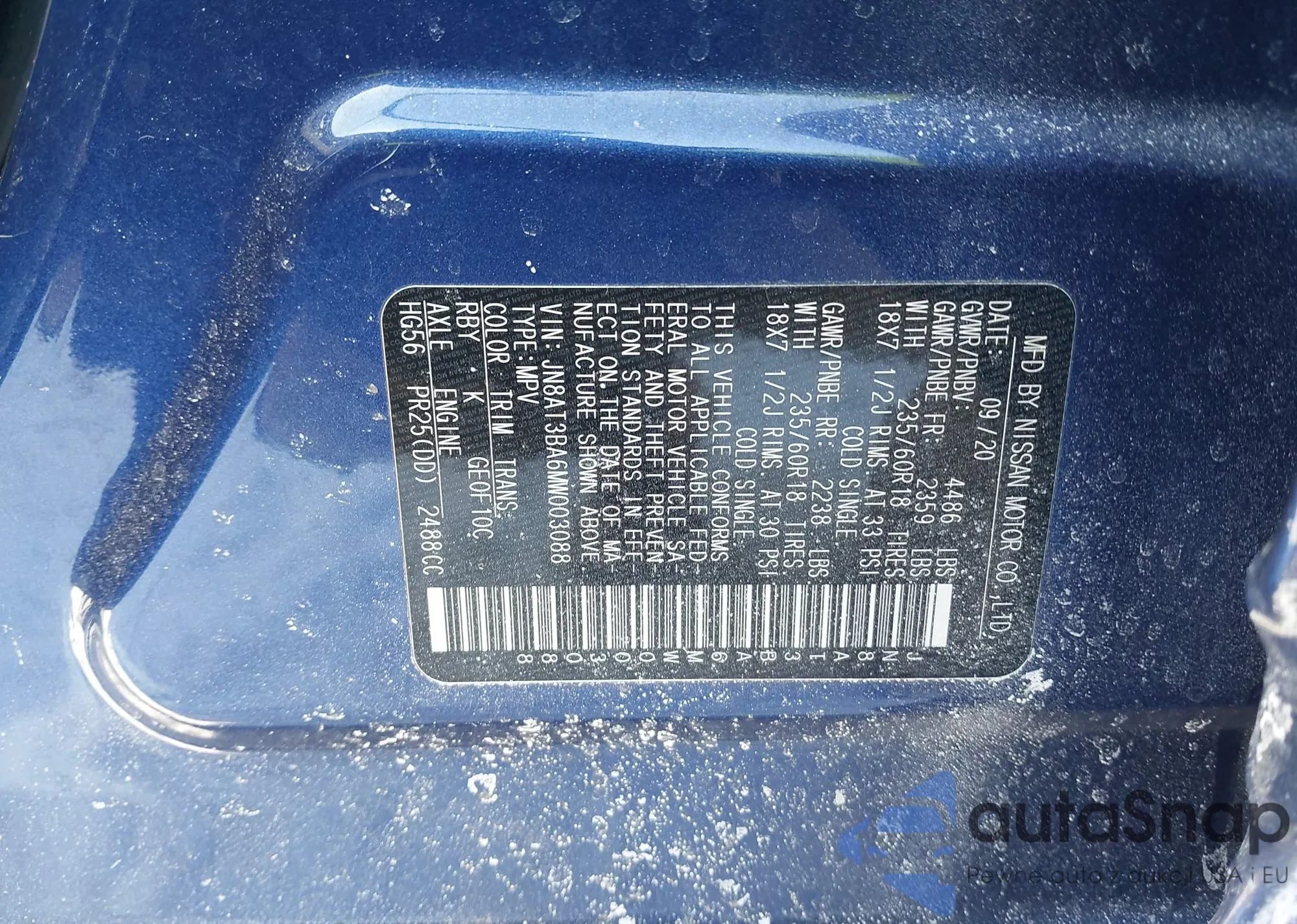 LOT: 44310219 VIN: JN8AT3BA6MW003088