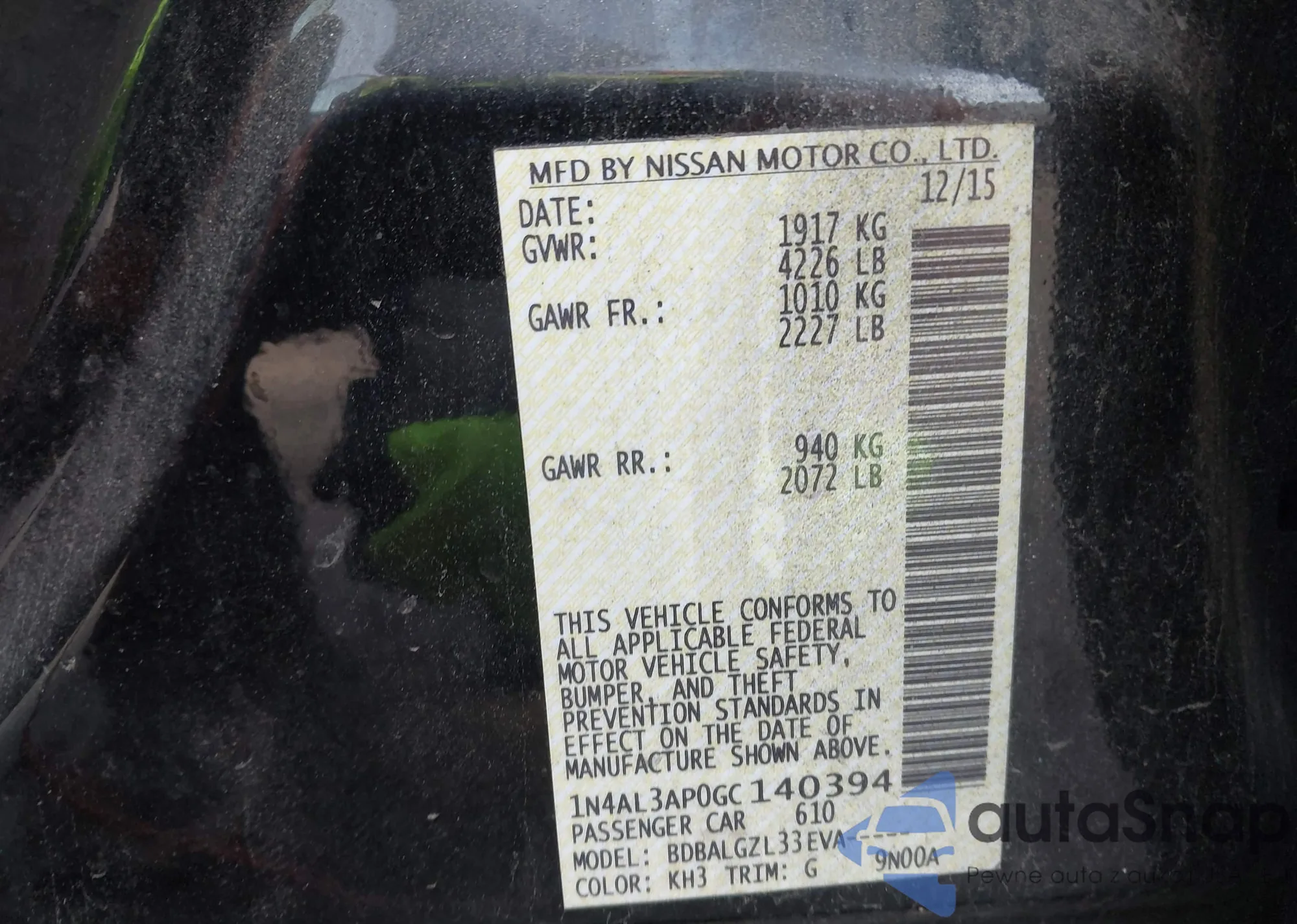 • VIN 1N4AL3AP0GC140394