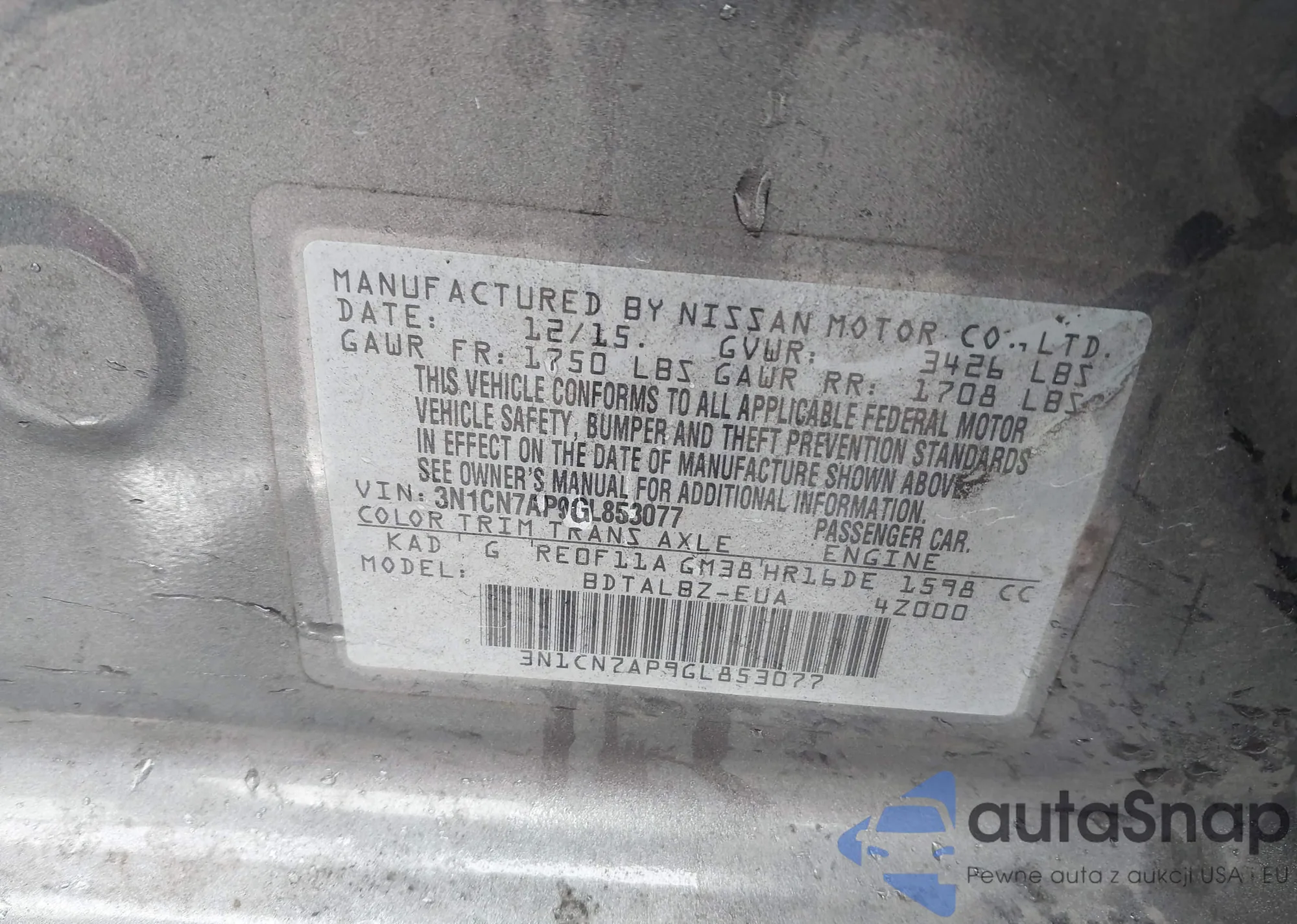 • VIN 3N1CN7AP9GL853077