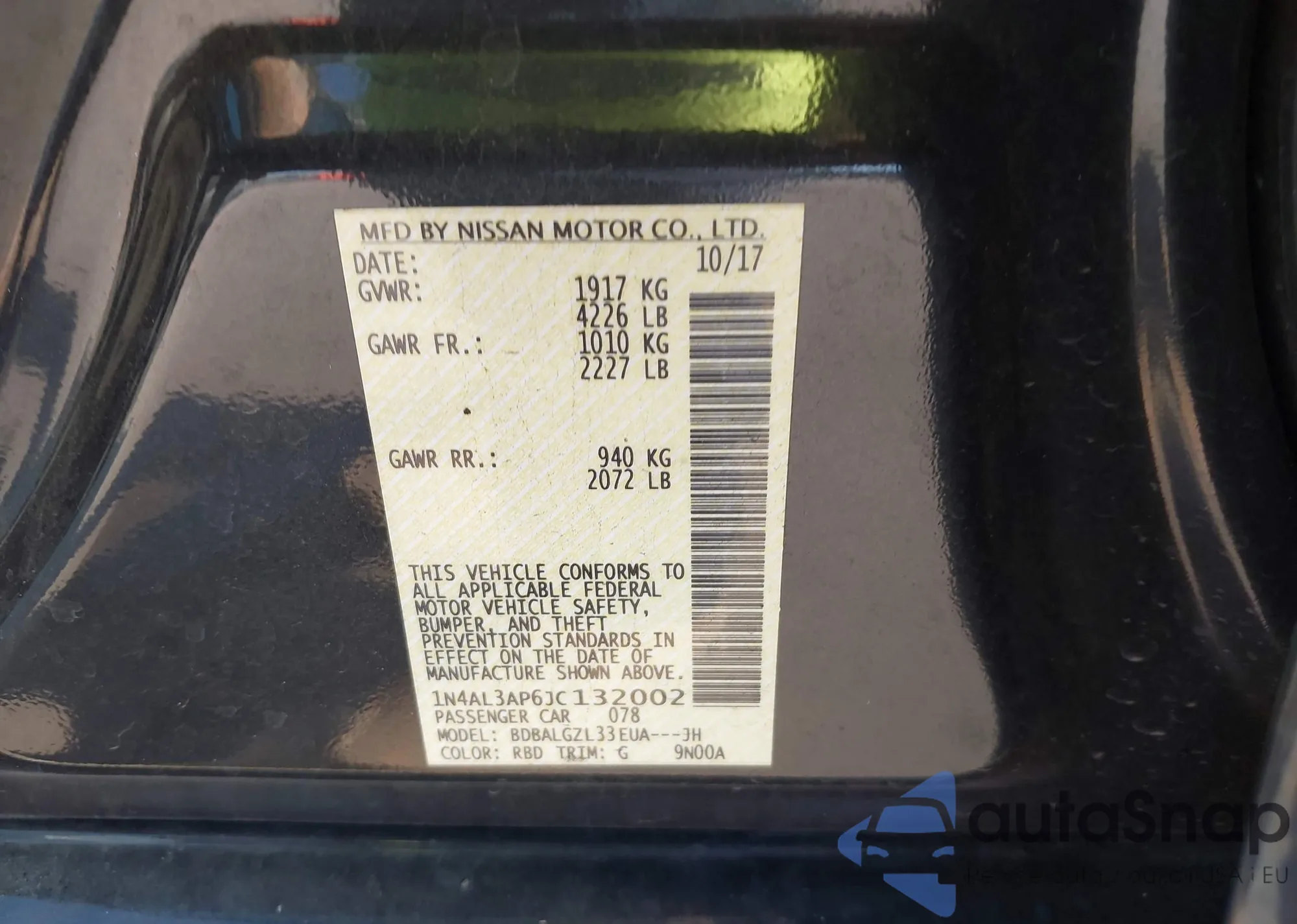 LOT: 43687516 VIN: 1N4AL3AP6JC132002