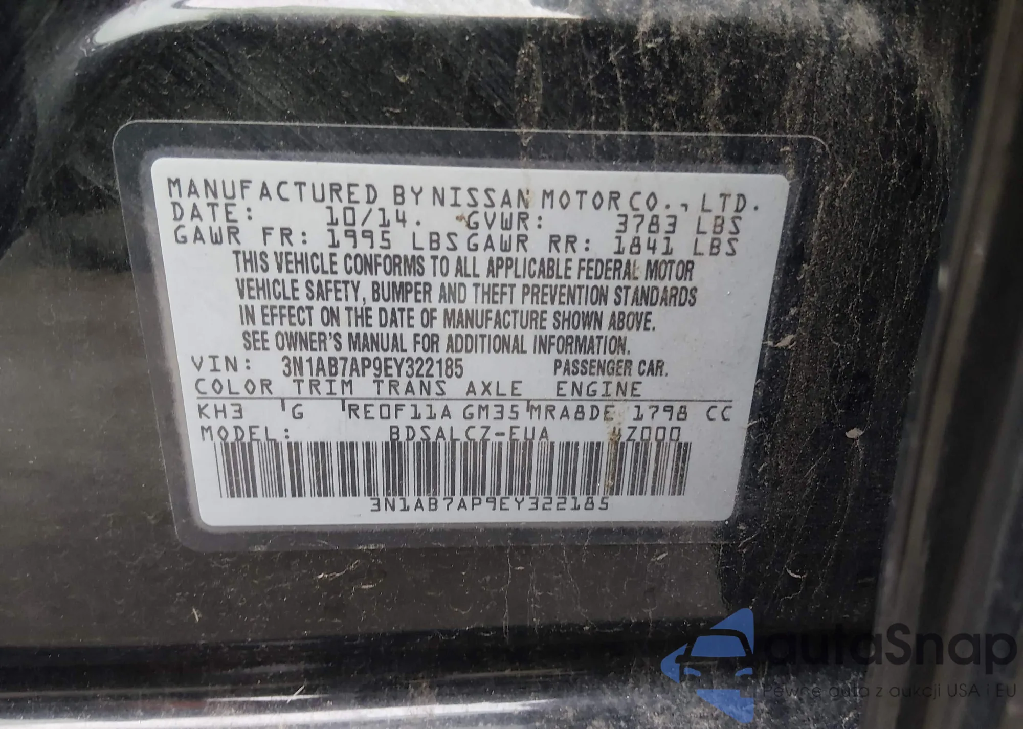 • VIN 3N1AB7AP9EY322185