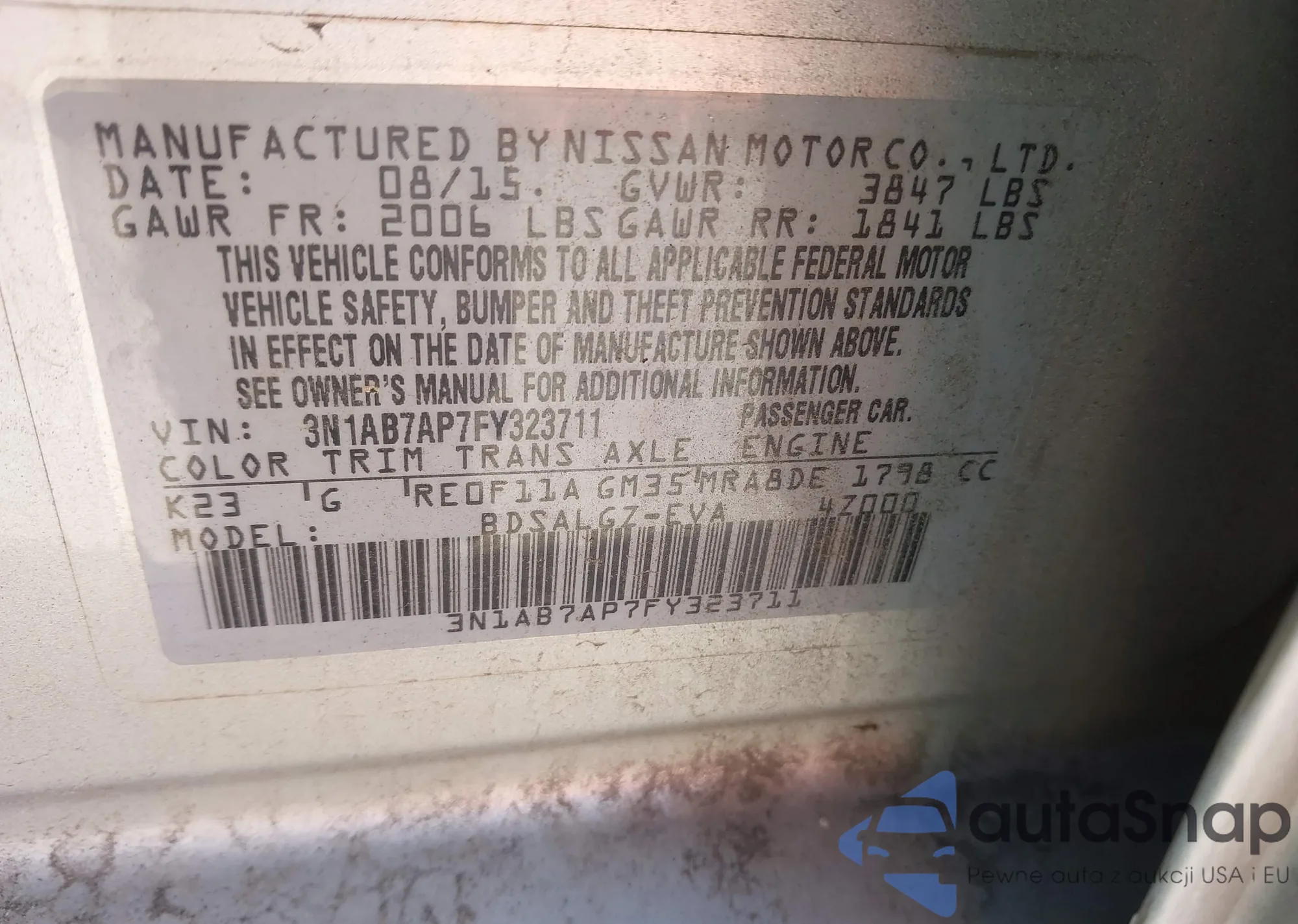 • VIN 3N1AB7AP7FY323711
