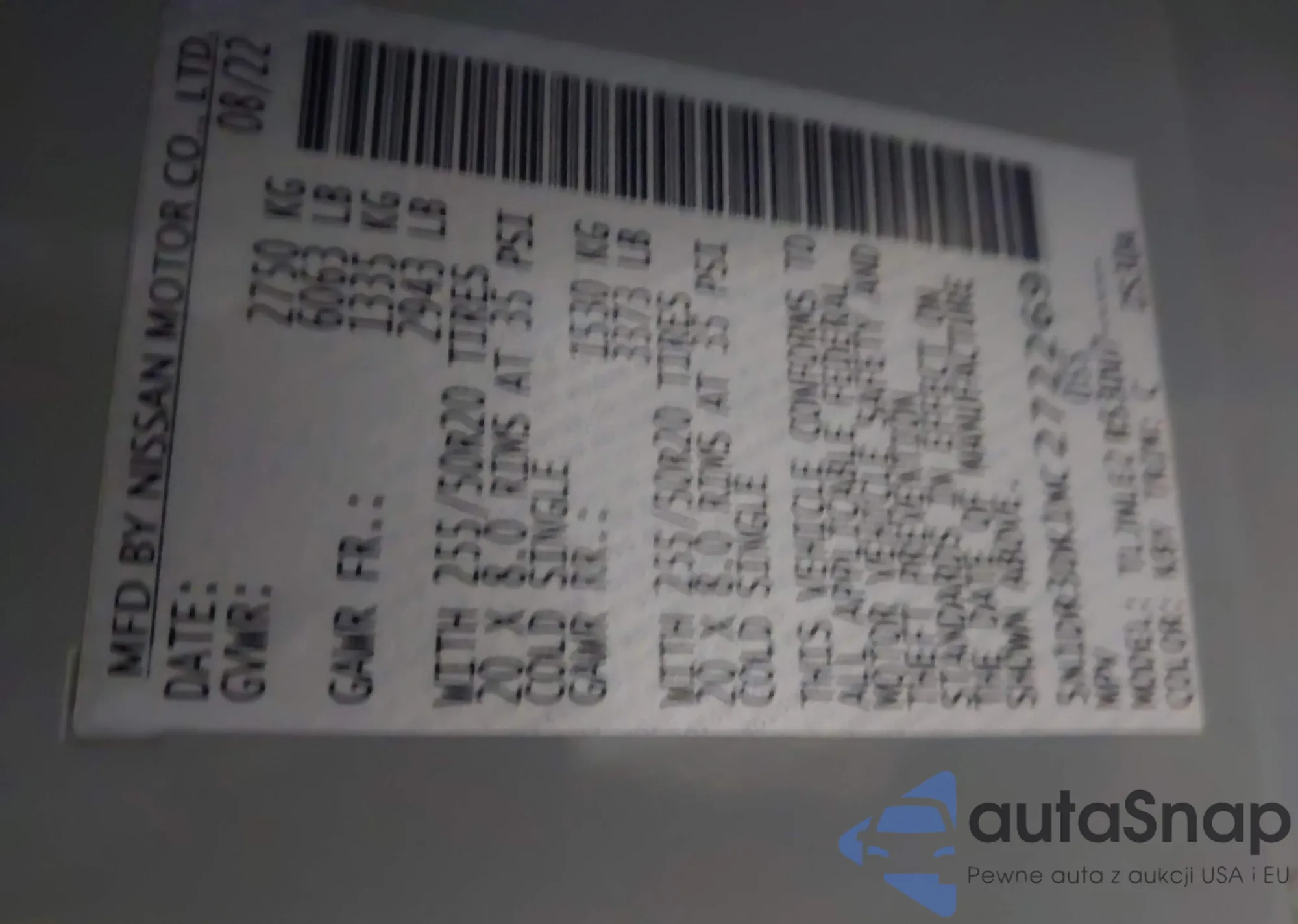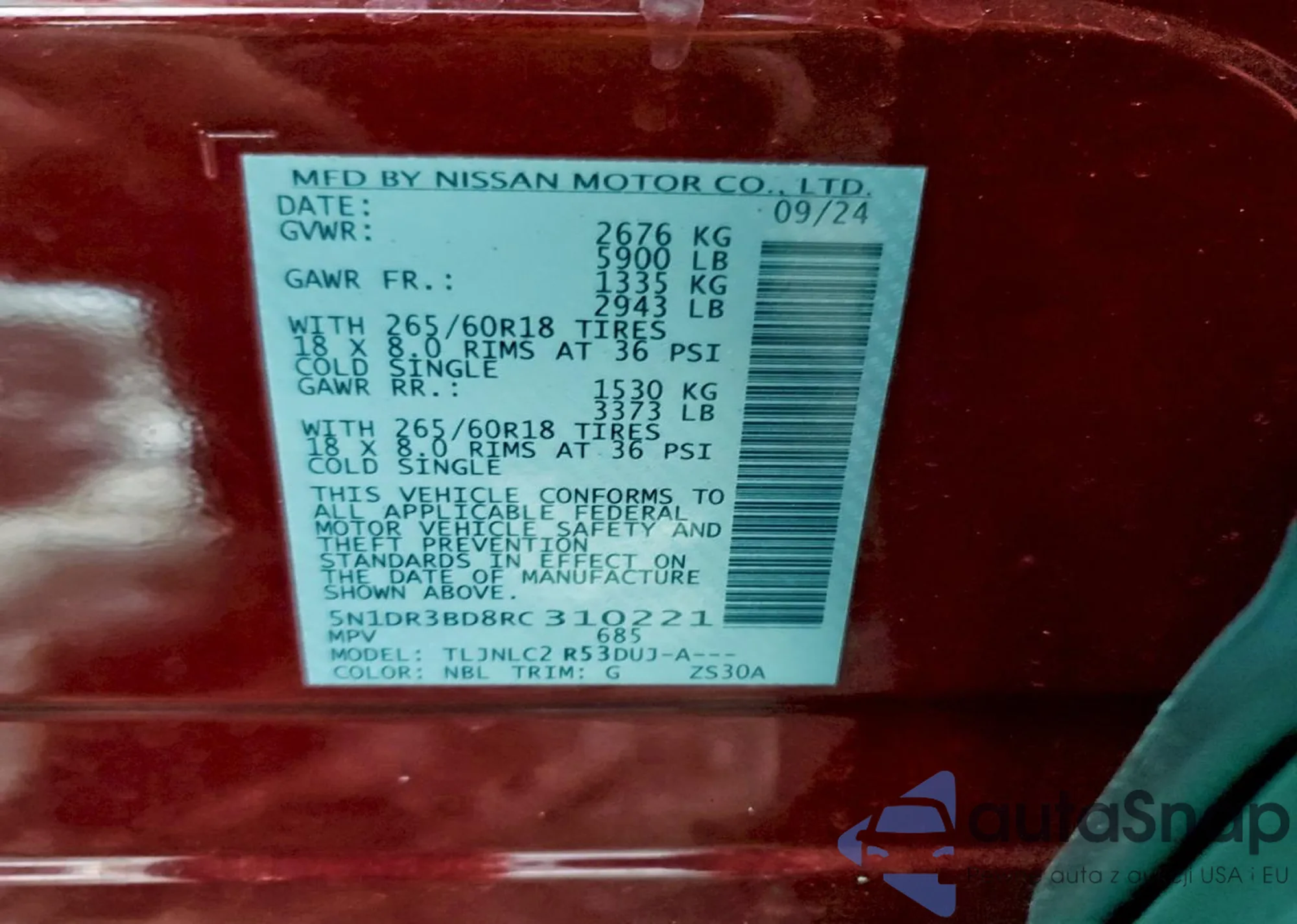 • VIN 5N1DR3DK1NC272269