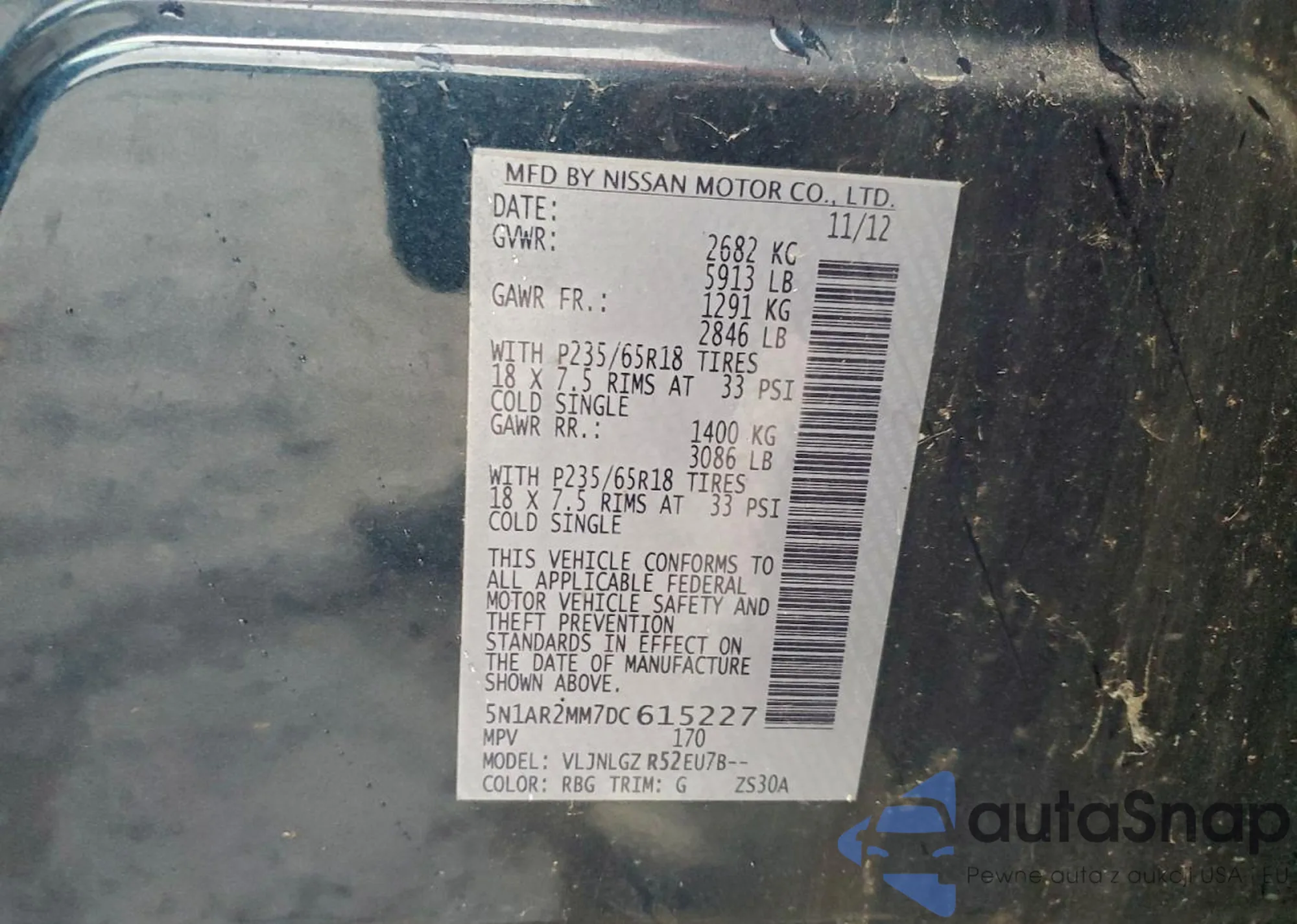 LOT: 97005315 VIN: 5N1AR2MM7DC615227
