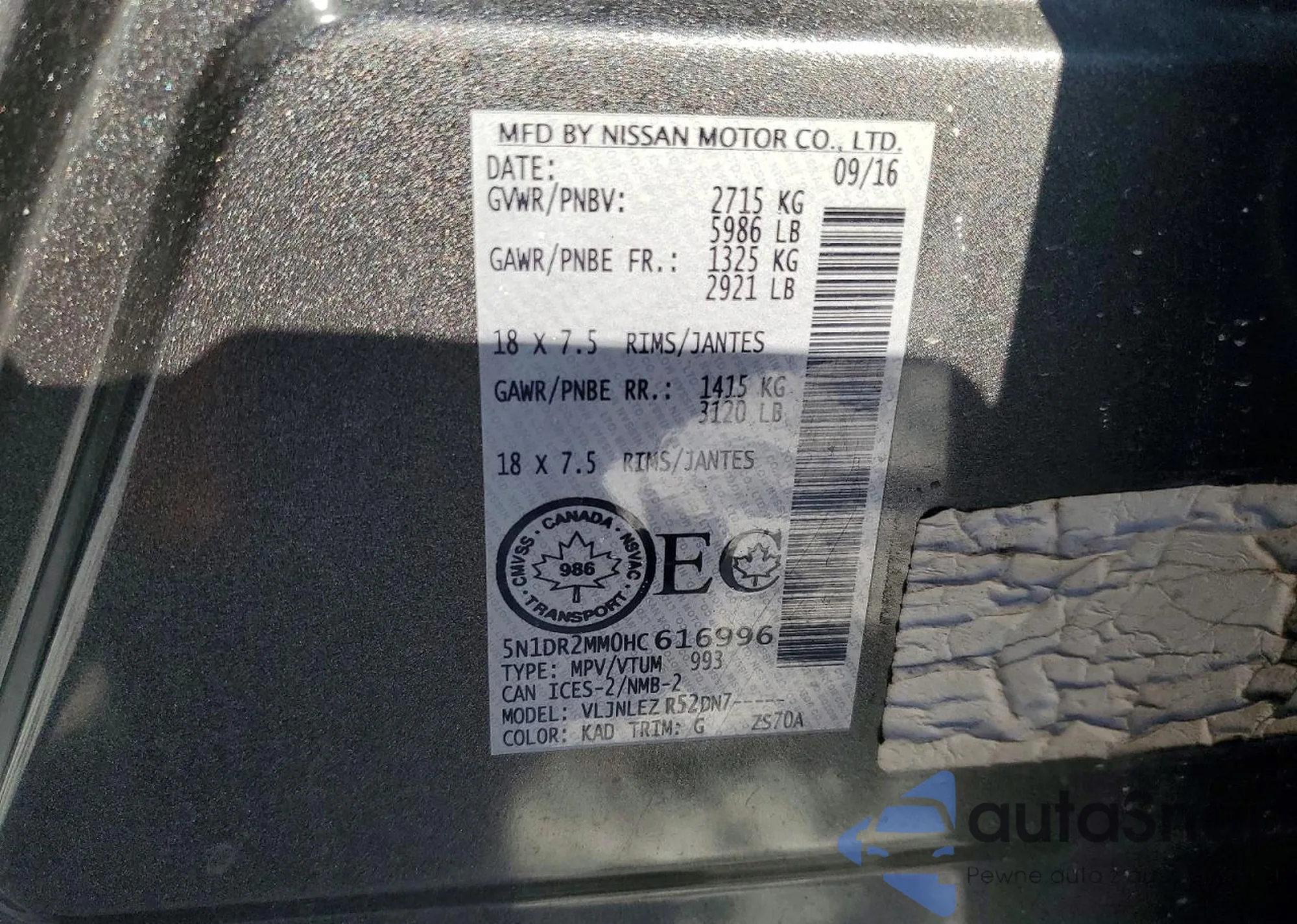 • VIN 5N1DR2MM0HC616996
