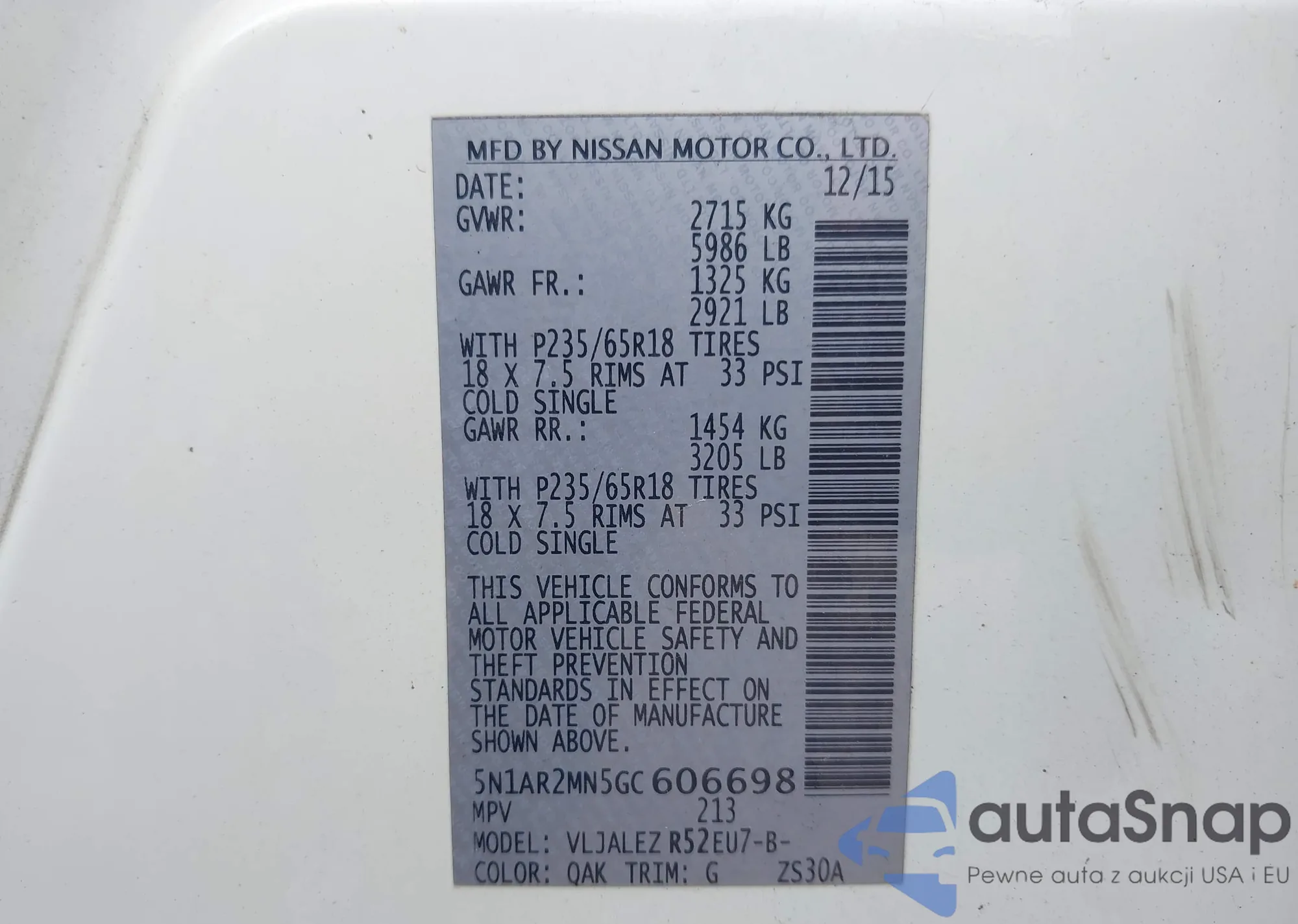 LOT: 43209266 VIN: 5N1AR2MN1FC712984
