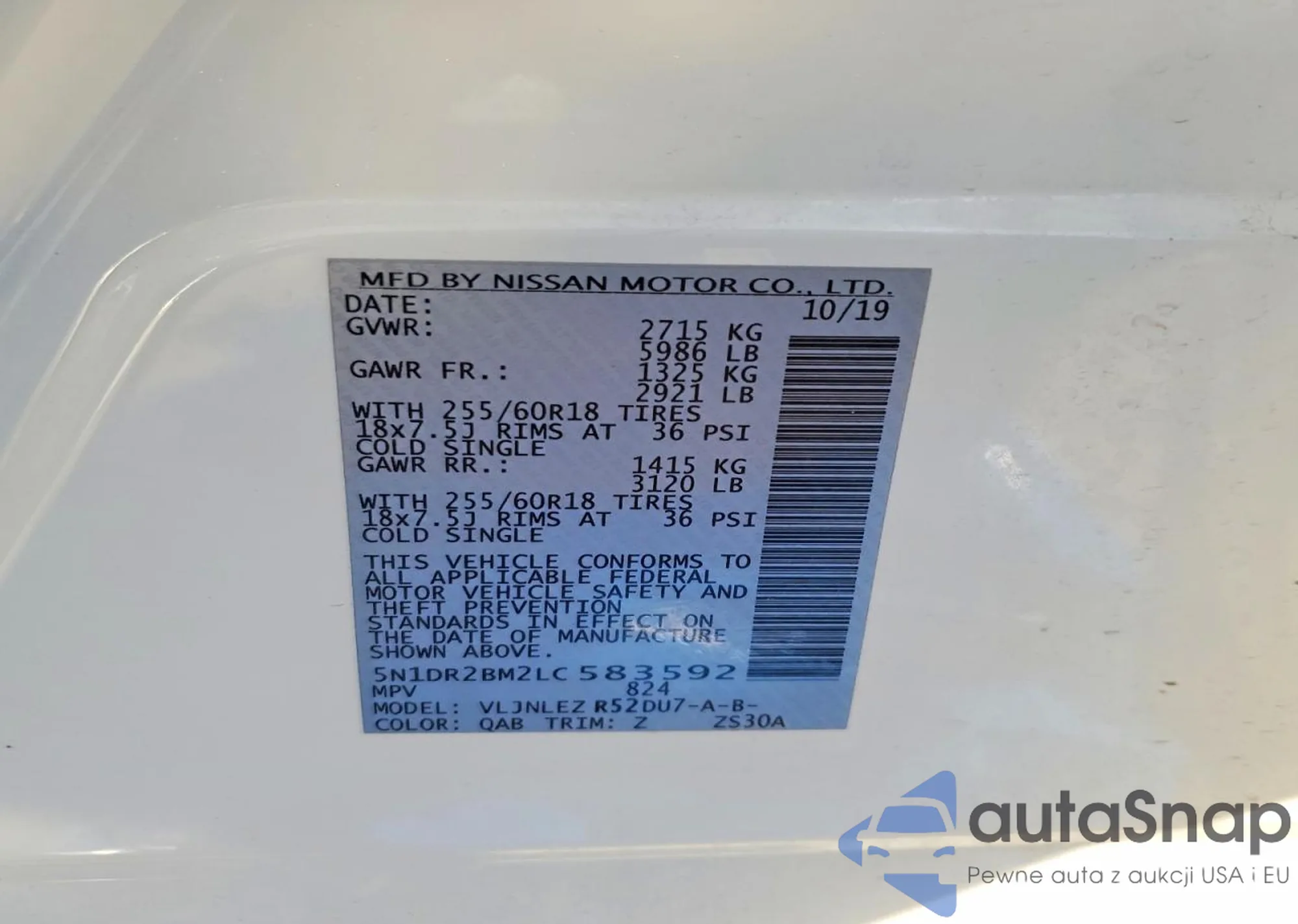 • VIN 5N1DR2BM2LC583592