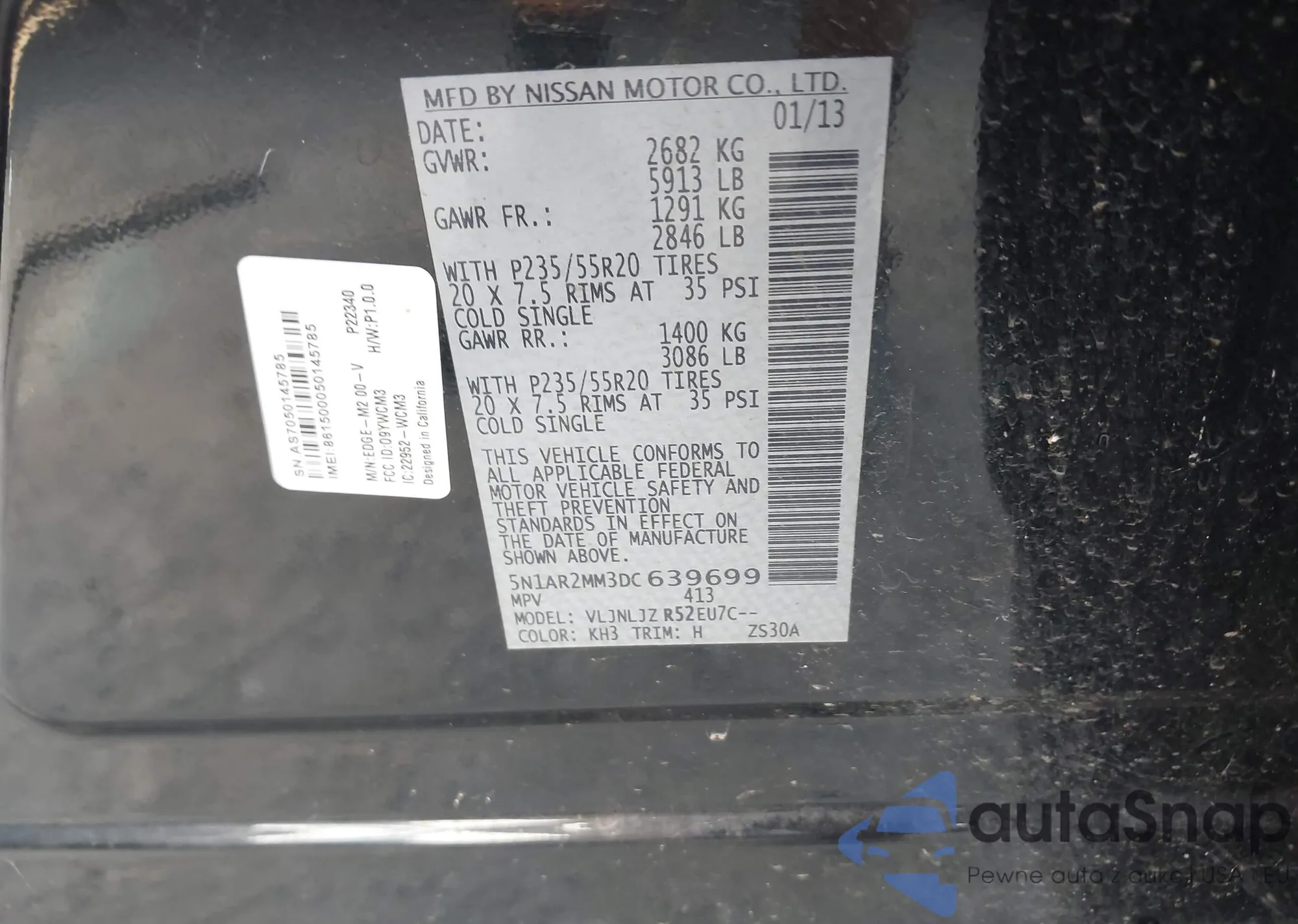 • VIN 5N1AR2MM3DC639699