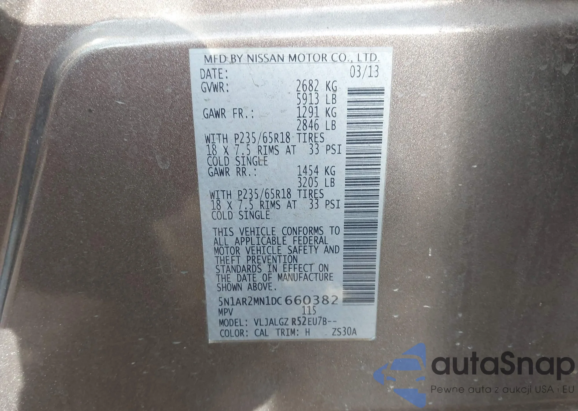 • VIN 5N1AR2MN1DC660382
