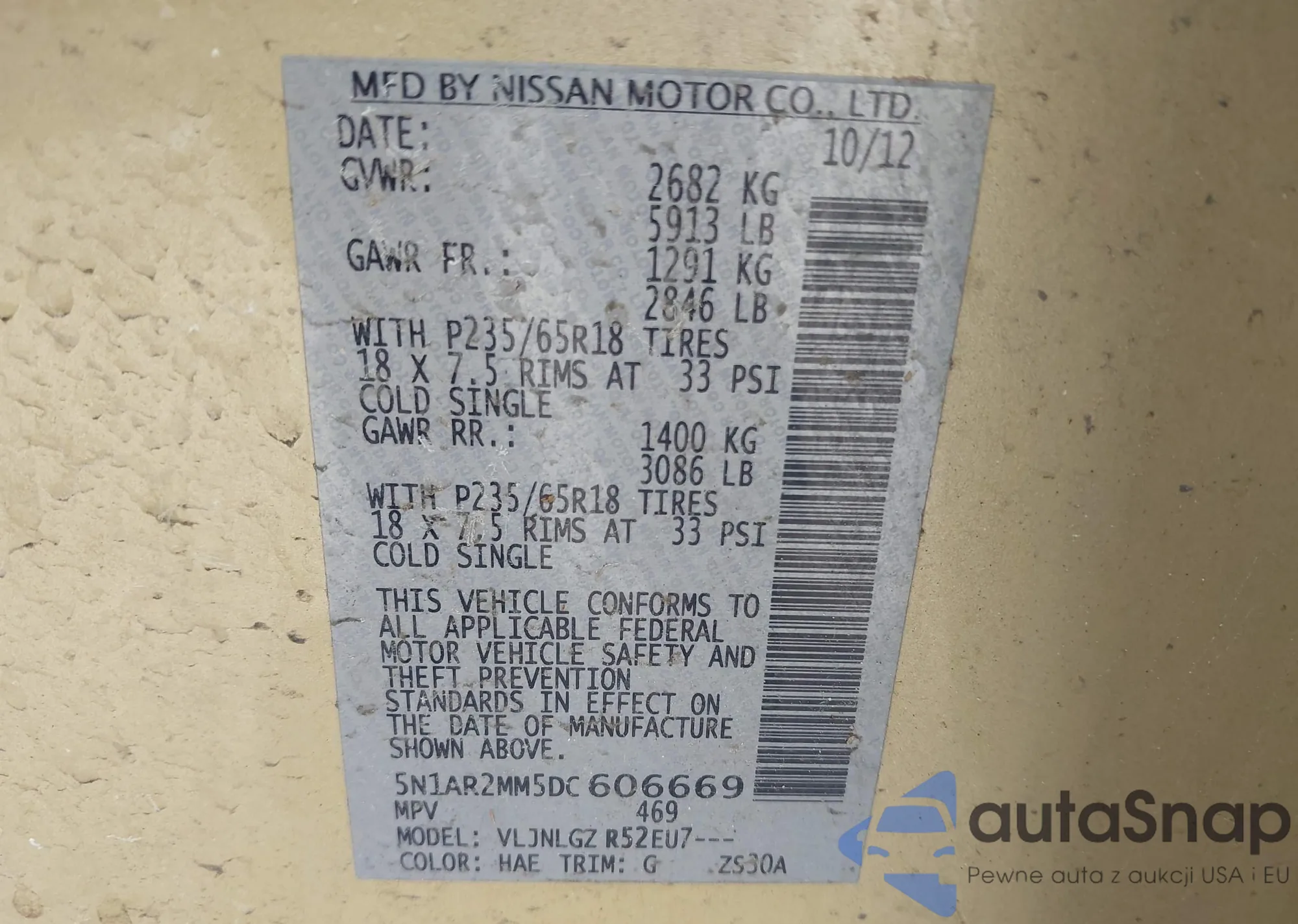 LOT: 44350717 VIN: 5N1AR2MM5DC606669