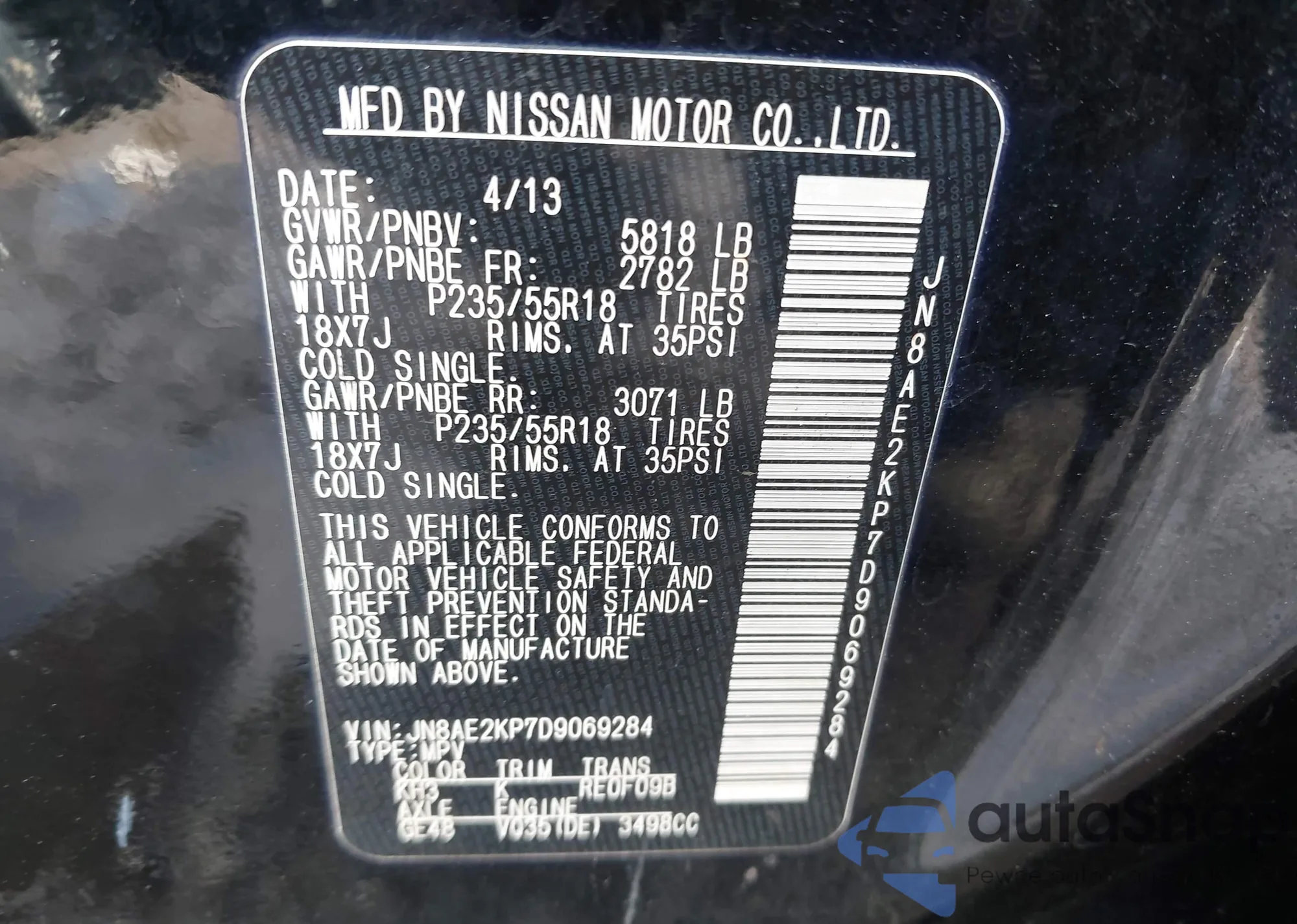 LOT: 44106765 VIN: JN8AE2KP7D9069284