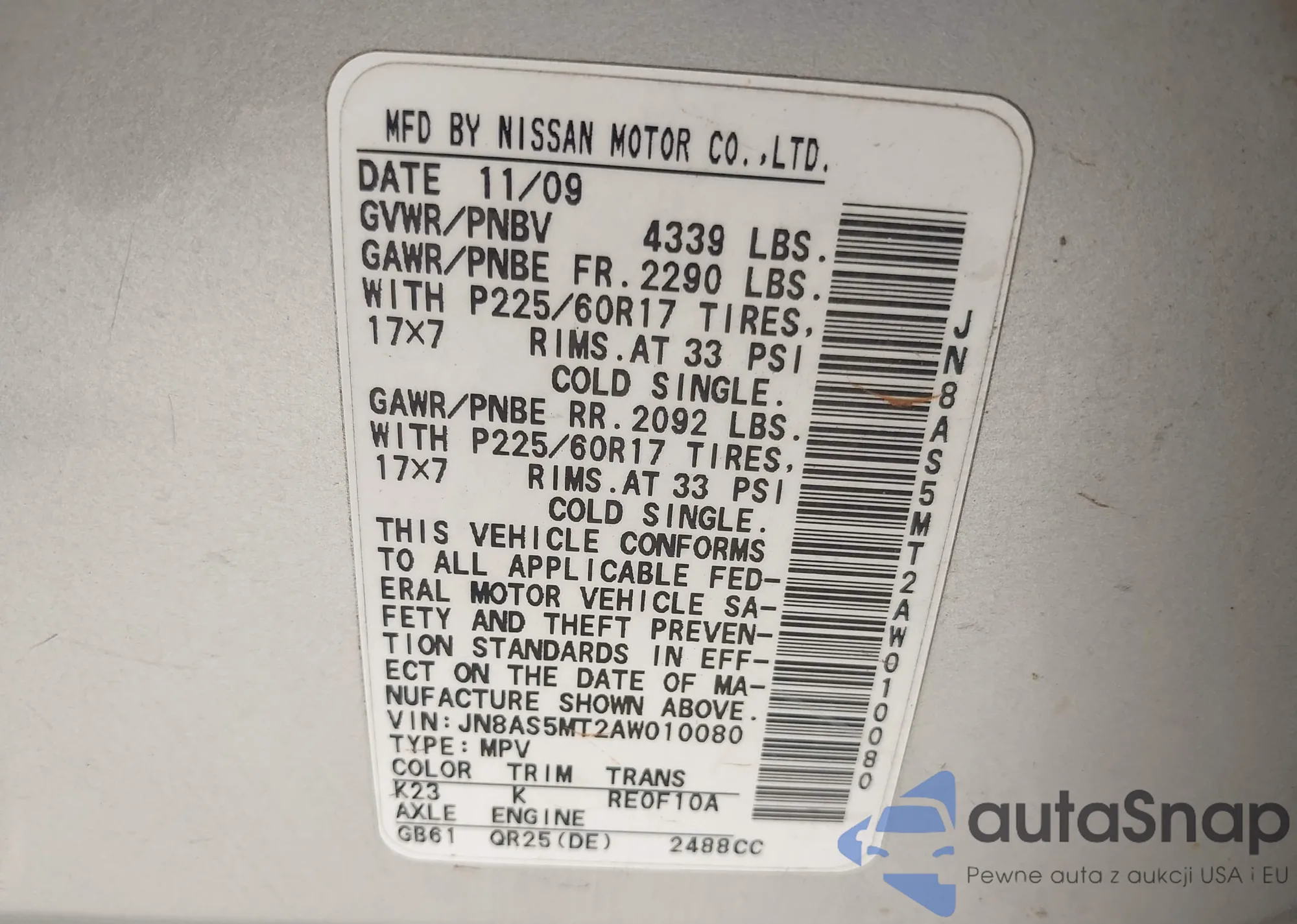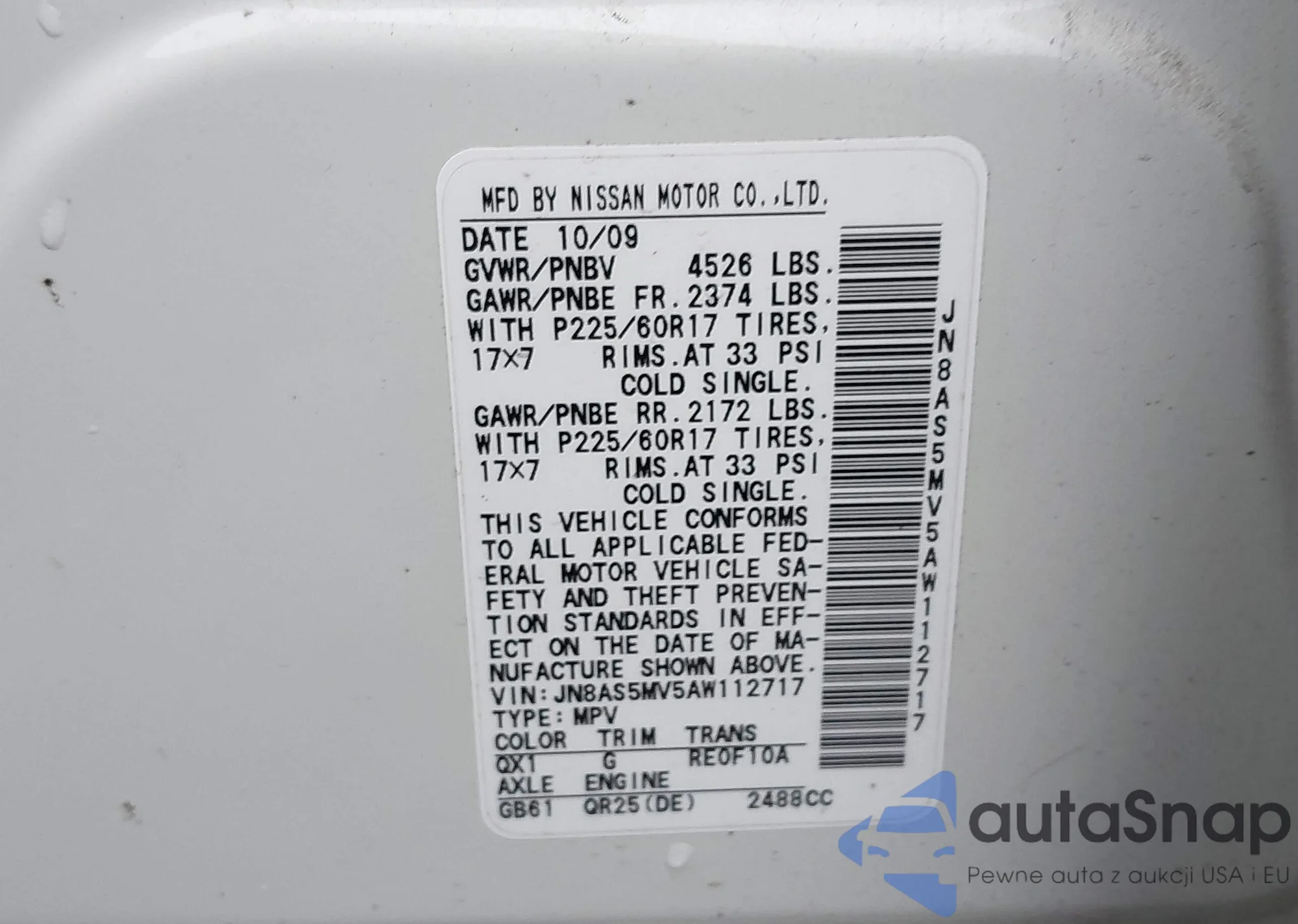 • VIN JN8AS5MV5AW112717