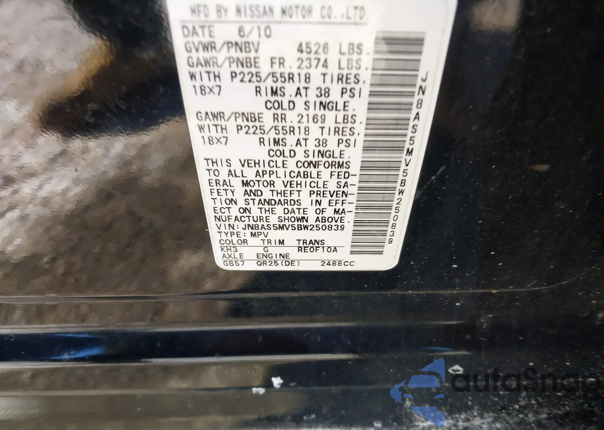 • VIN JN8AS5MT8BW173513