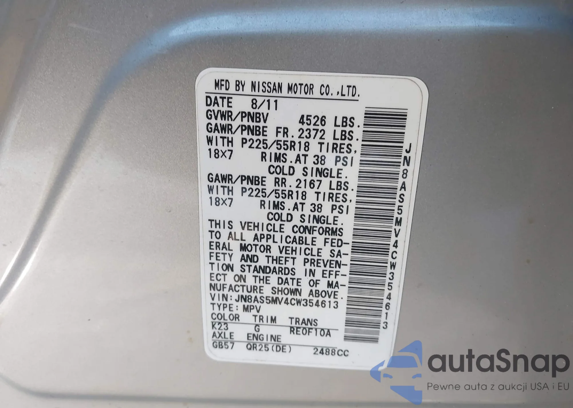 LOT: 43817191 VIN: JN8AS5MV7CW373981