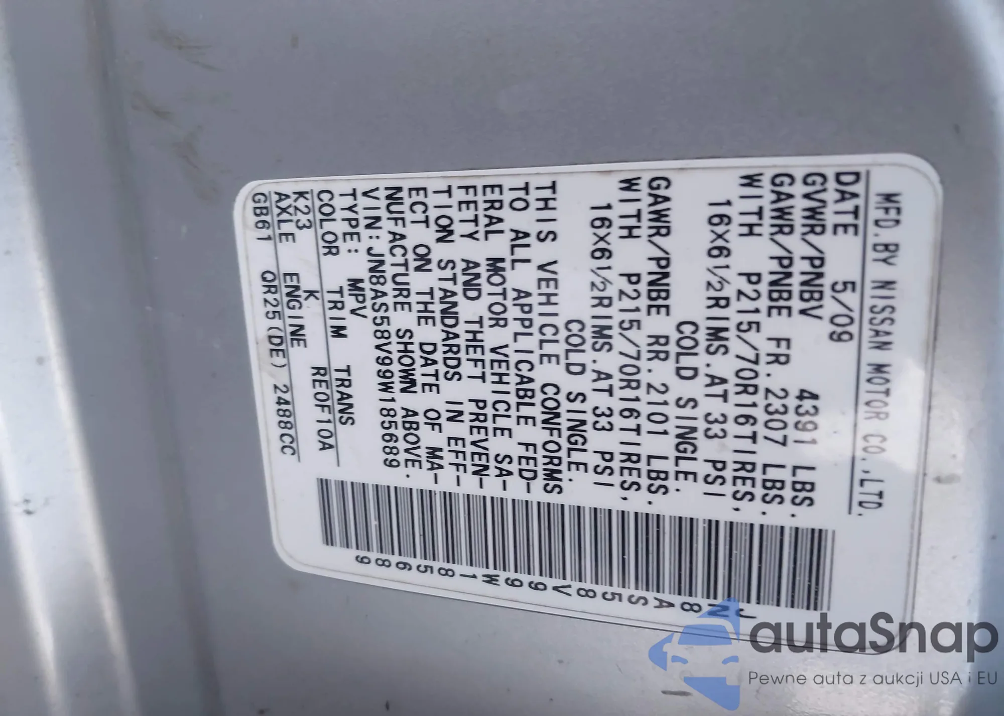 • VIN JN8AS58V59W437275