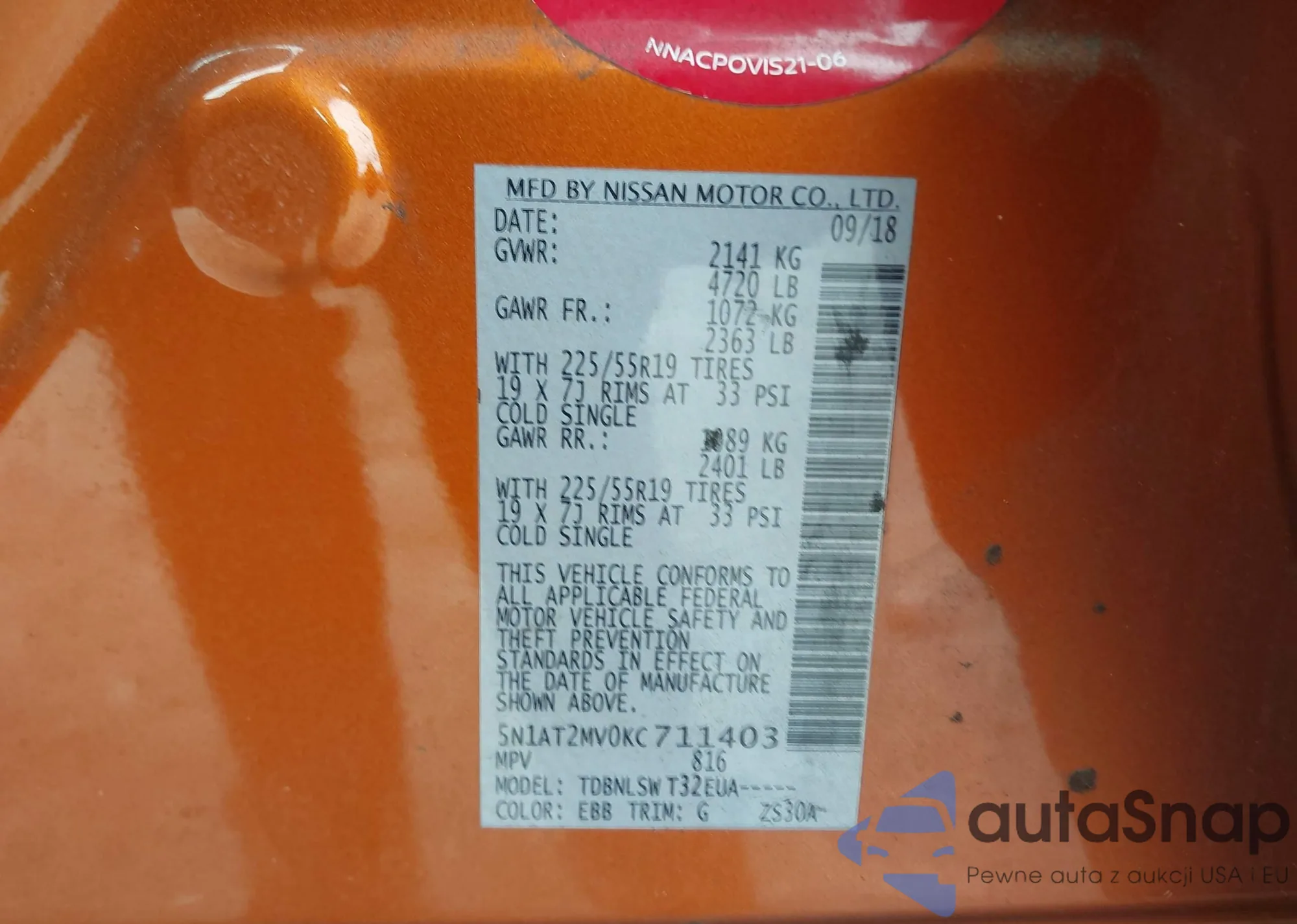 LOT: 43696178 VIN: 5N1AT2MV0KC711403
