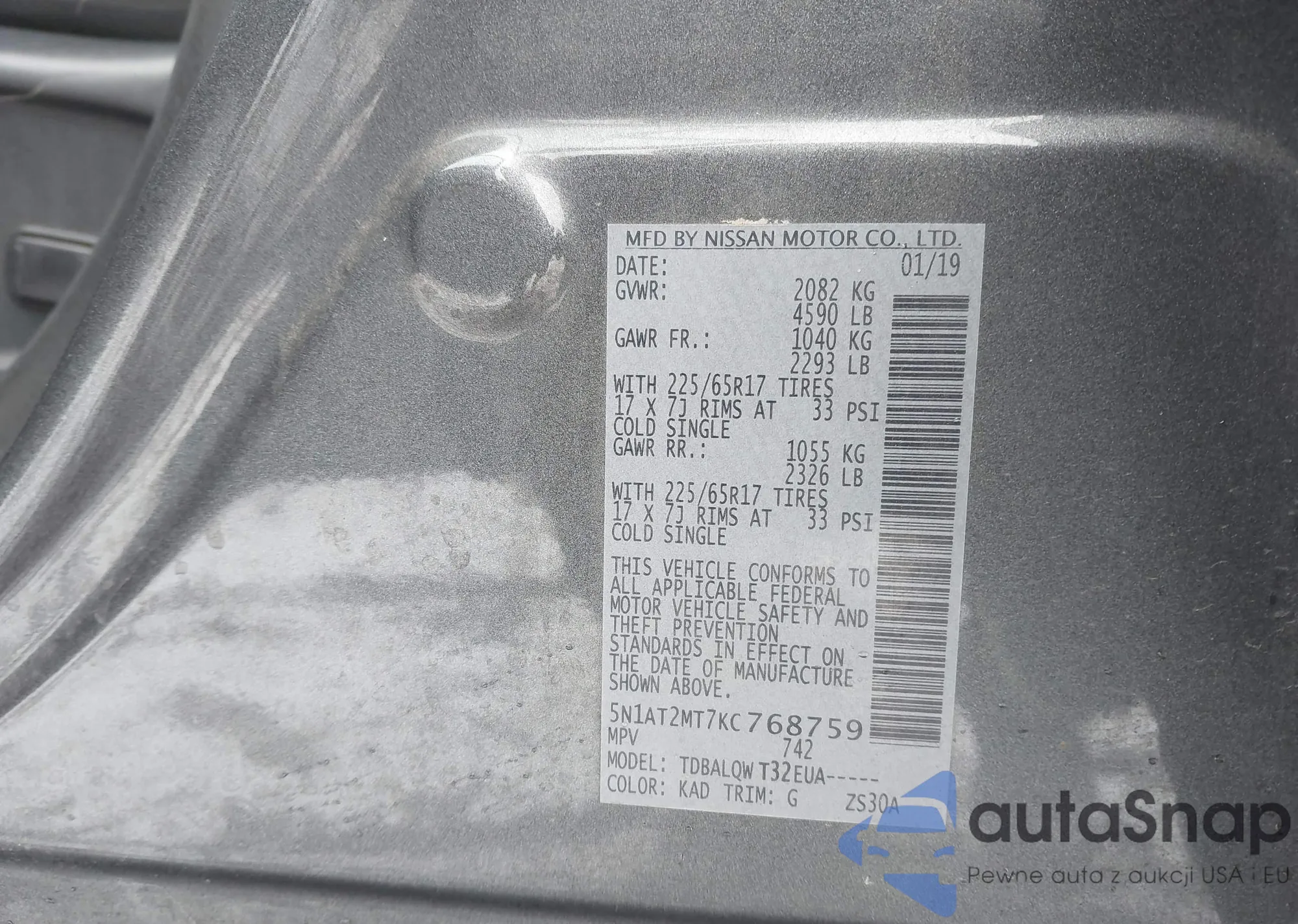 LOT: 43909125 VIN: 5N1AT2MT7KC768759