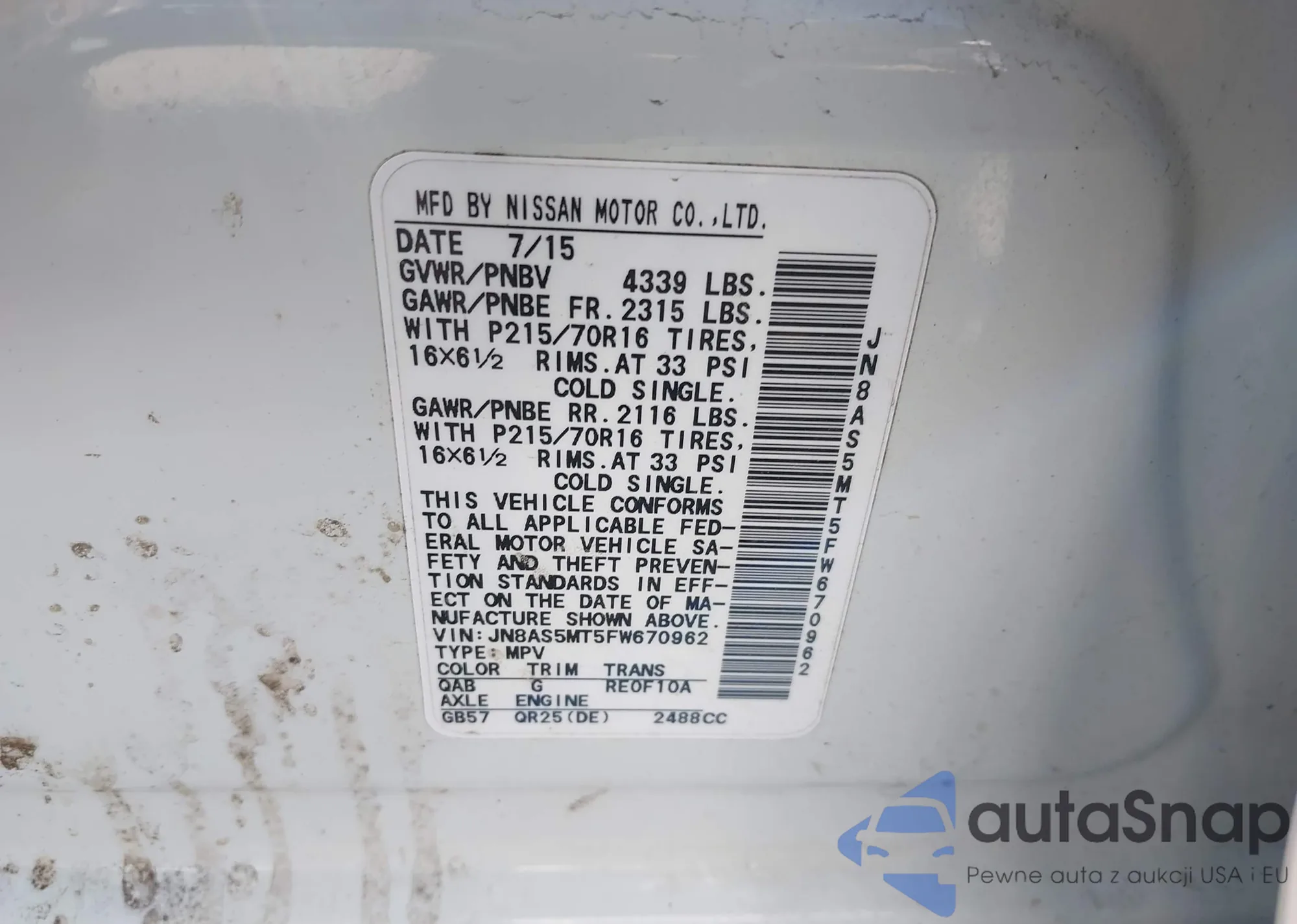 LOT: 44179978 VIN: JN8AS5MT5FW670962