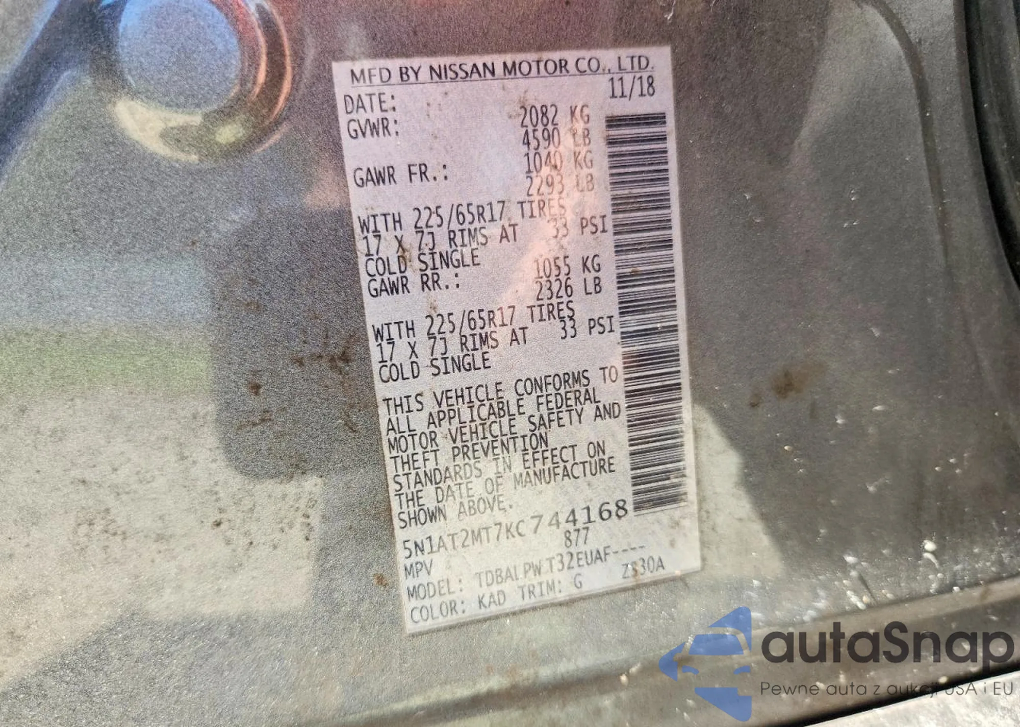 LOT: 42079996 VIN: 5N1AT2MT7KC744168