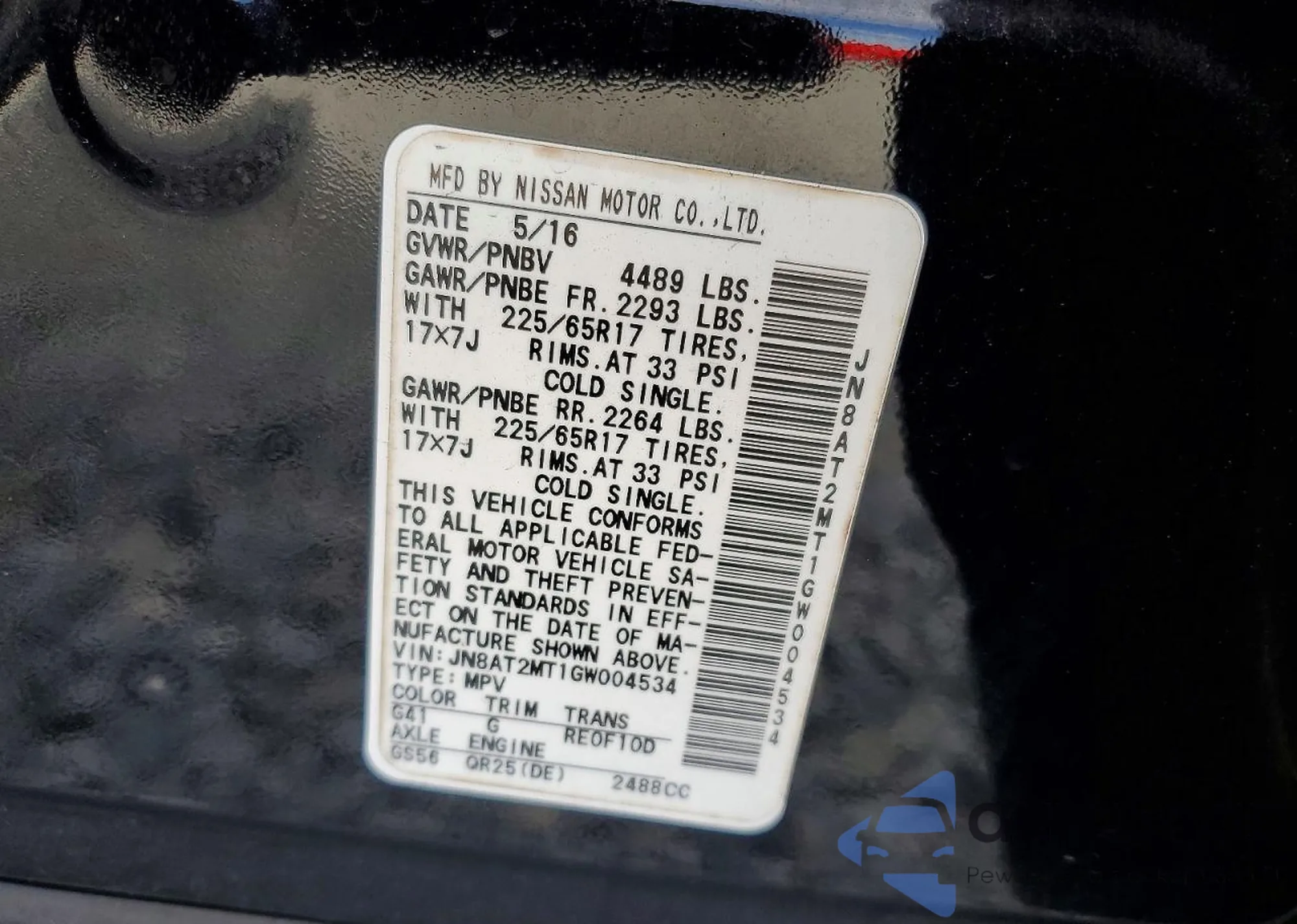 LOT: 73332885 VIN: JN8AT2MT1GW004534