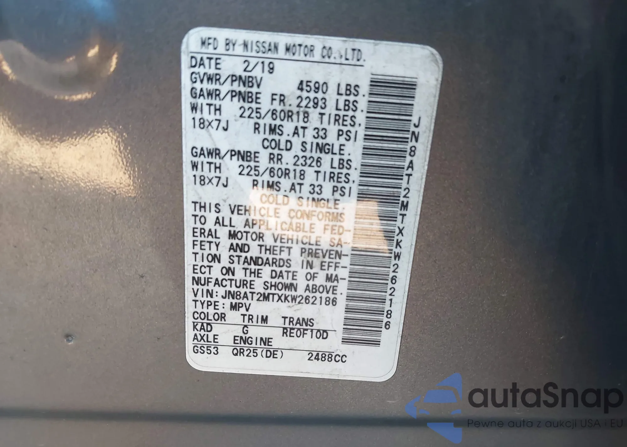 LOT: 44167817 VIN: JN8AT2MTXKW262186