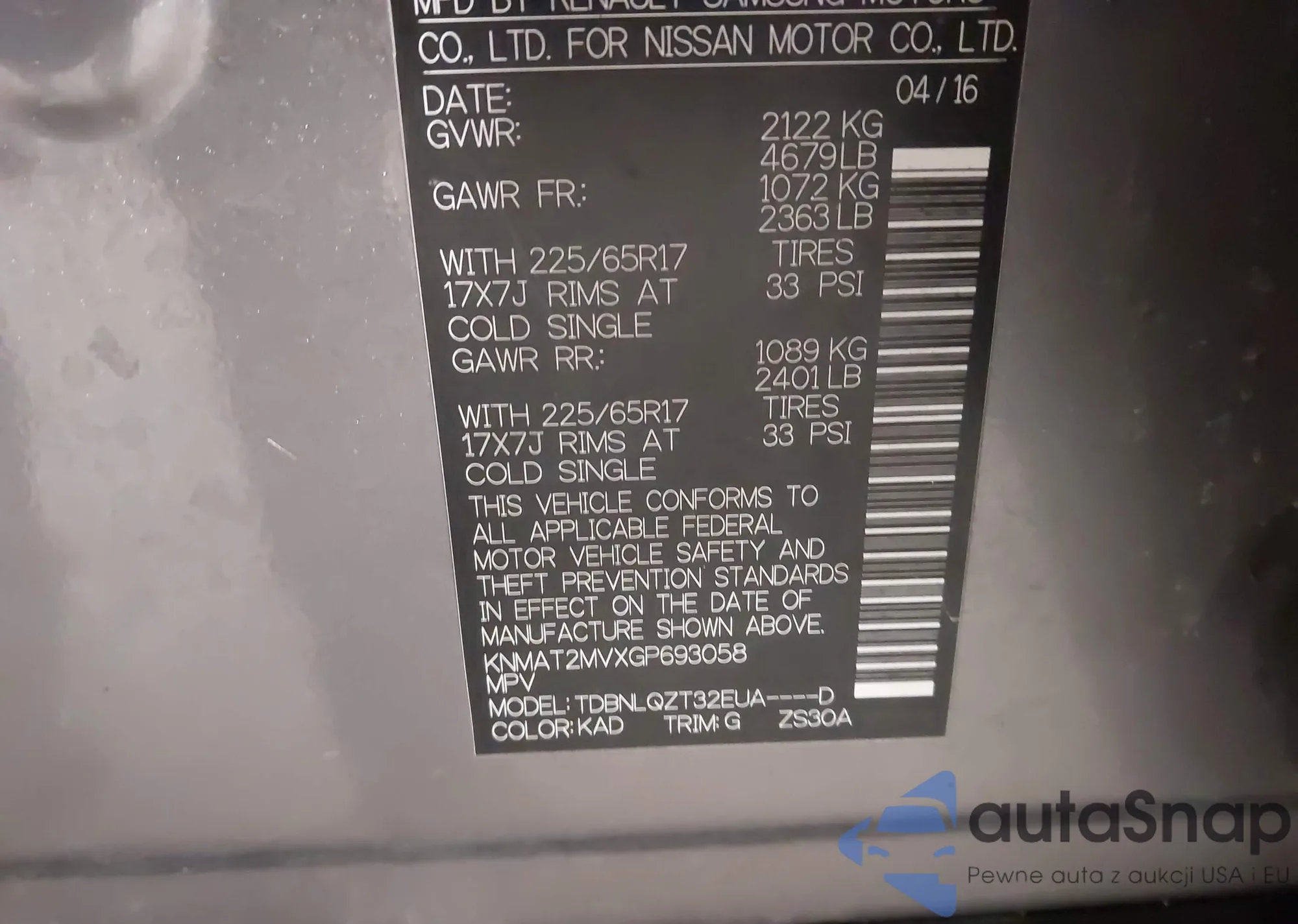 • VIN KNMAT2MVXGP693058