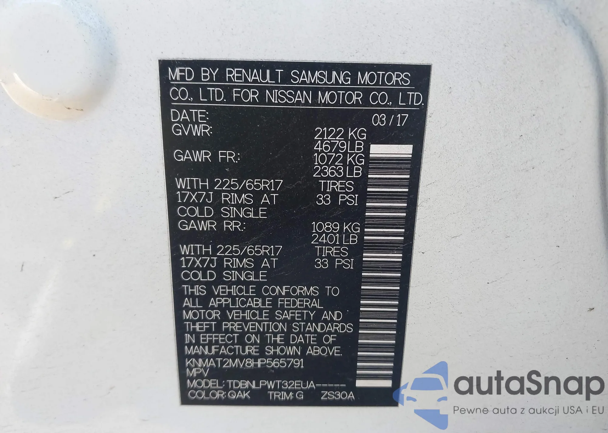 • VIN KNMAT2MV8HP565791