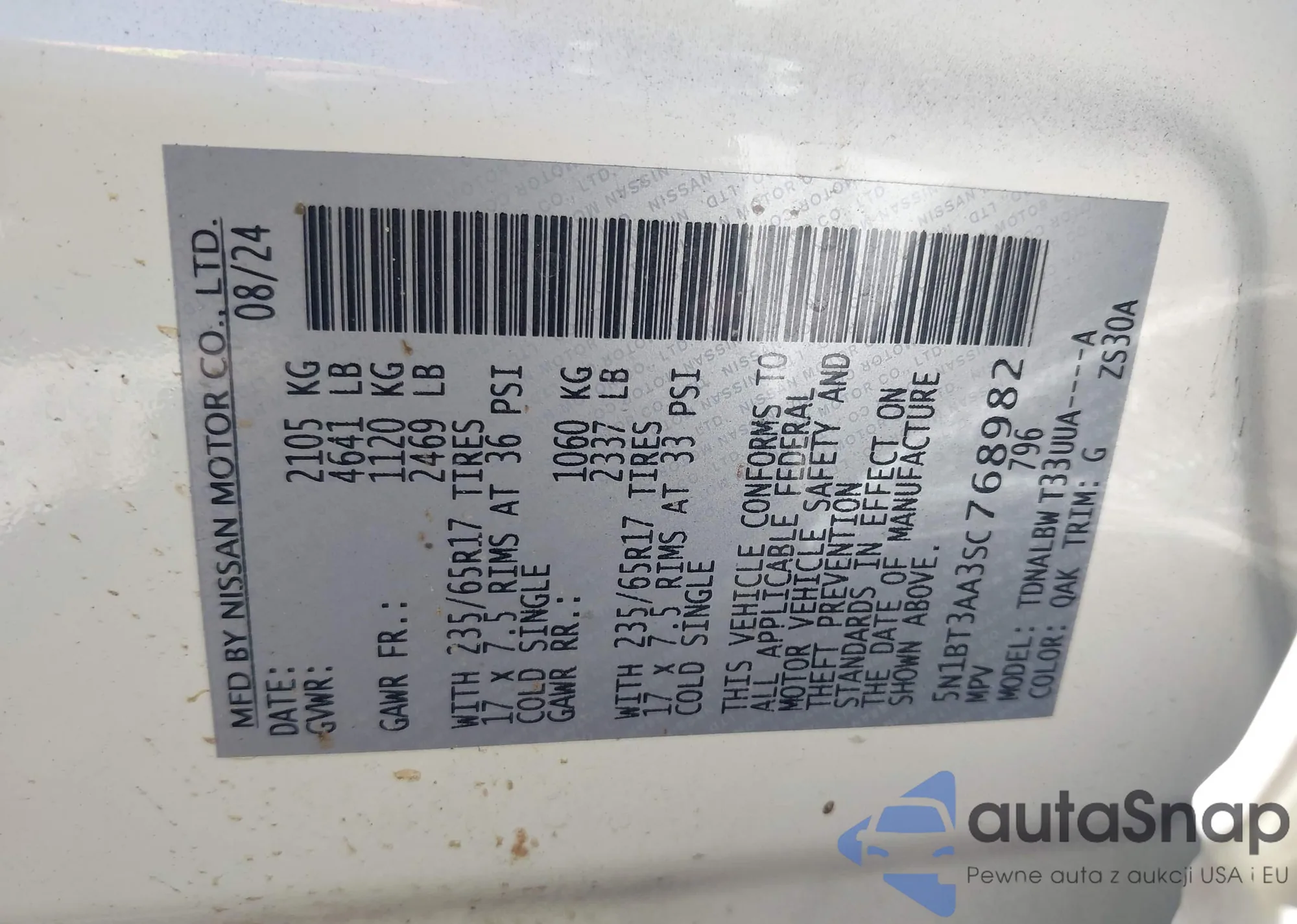 • VIN 5N1BT3AA3SC768982