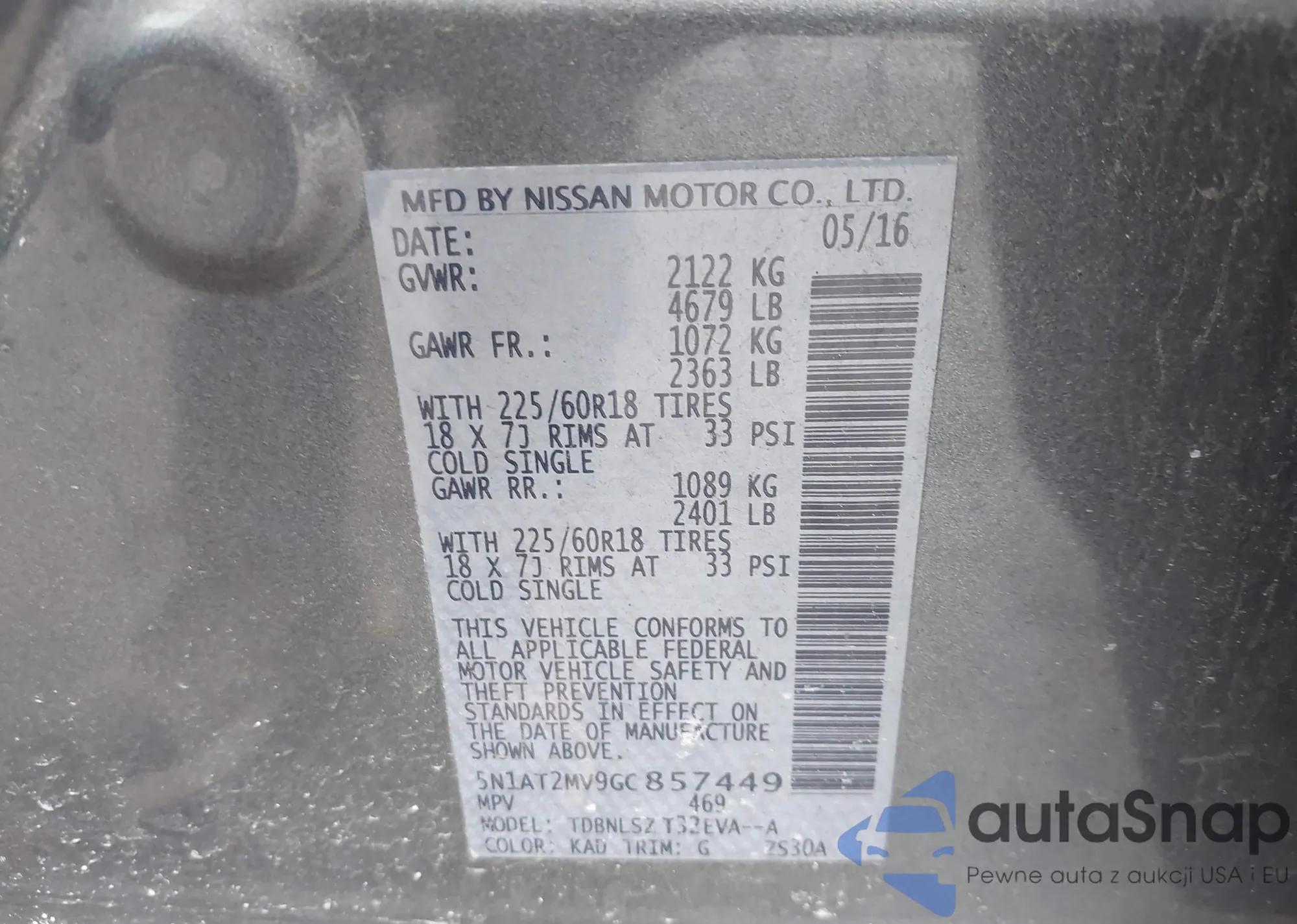 LOT: 44157443 VIN: JN8AT2MT6GW027968