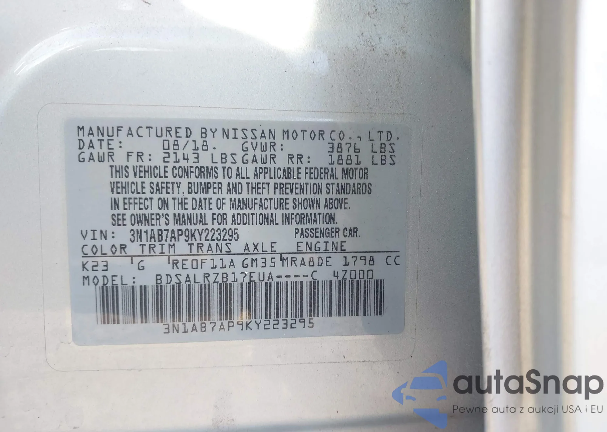 • VIN 3N1AB7AP9KY223295