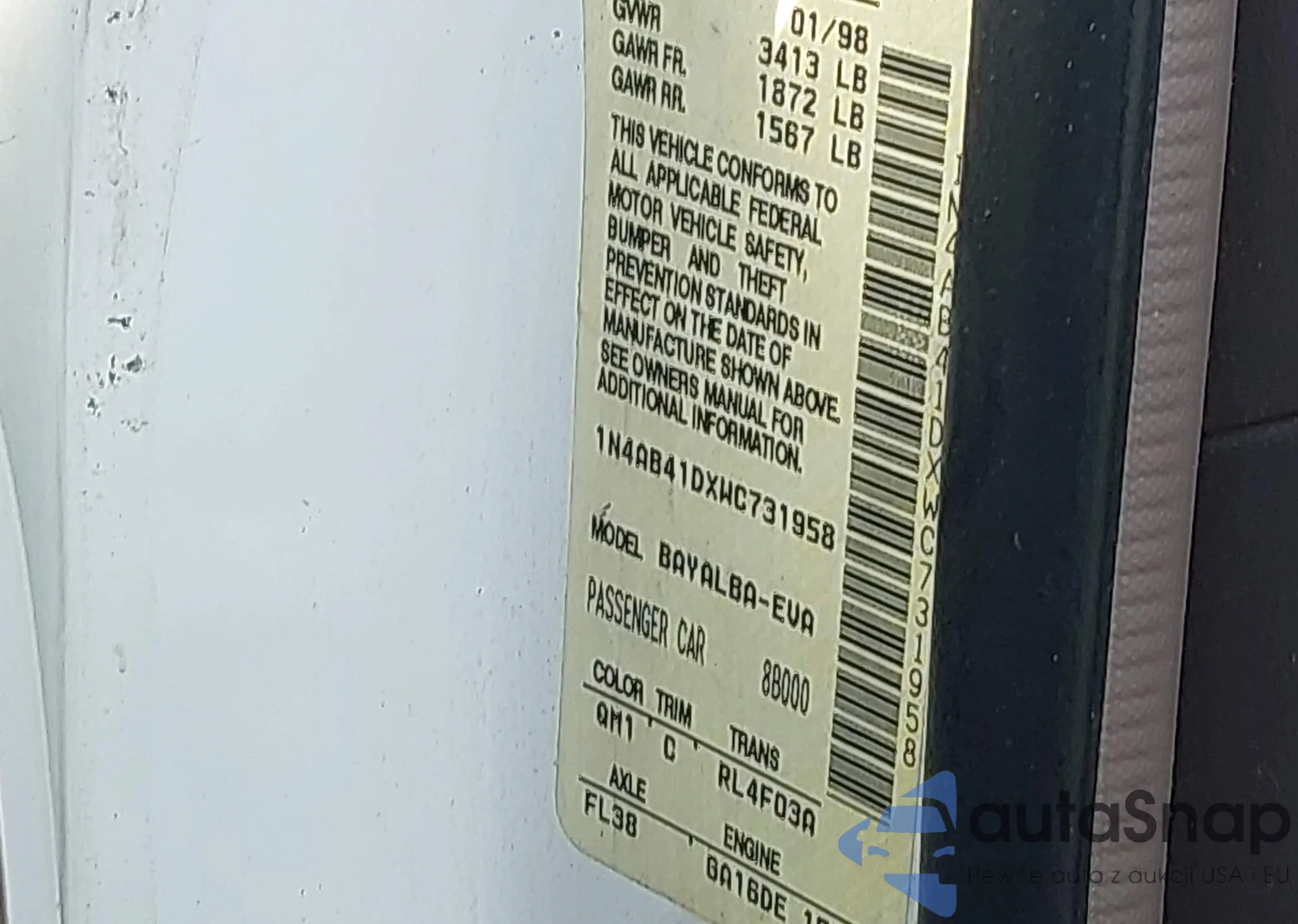 • VIN 1N4AB41DXWC731958