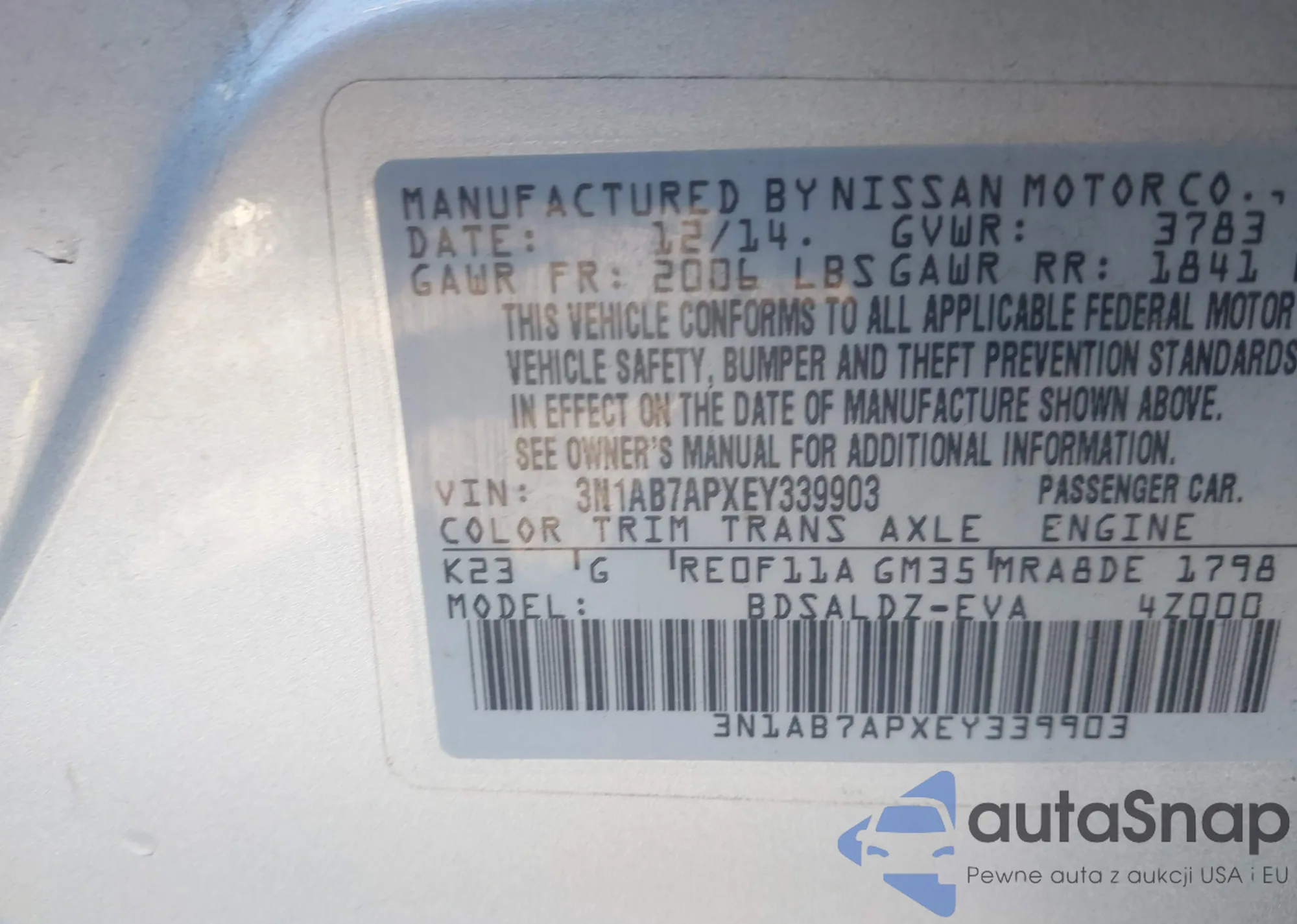 • VIN 3N1AB7APXEY339903