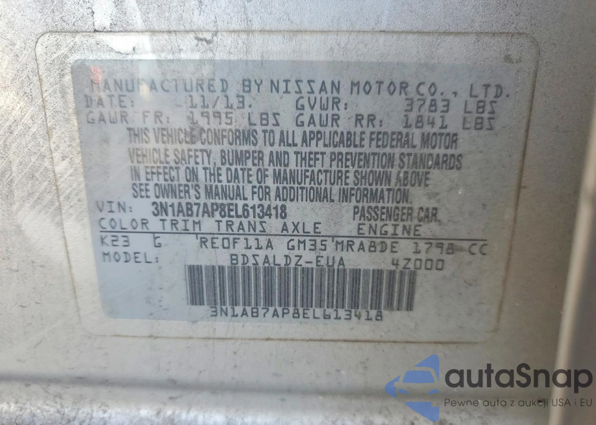 • VIN 3N1AB7AP8EL613418
