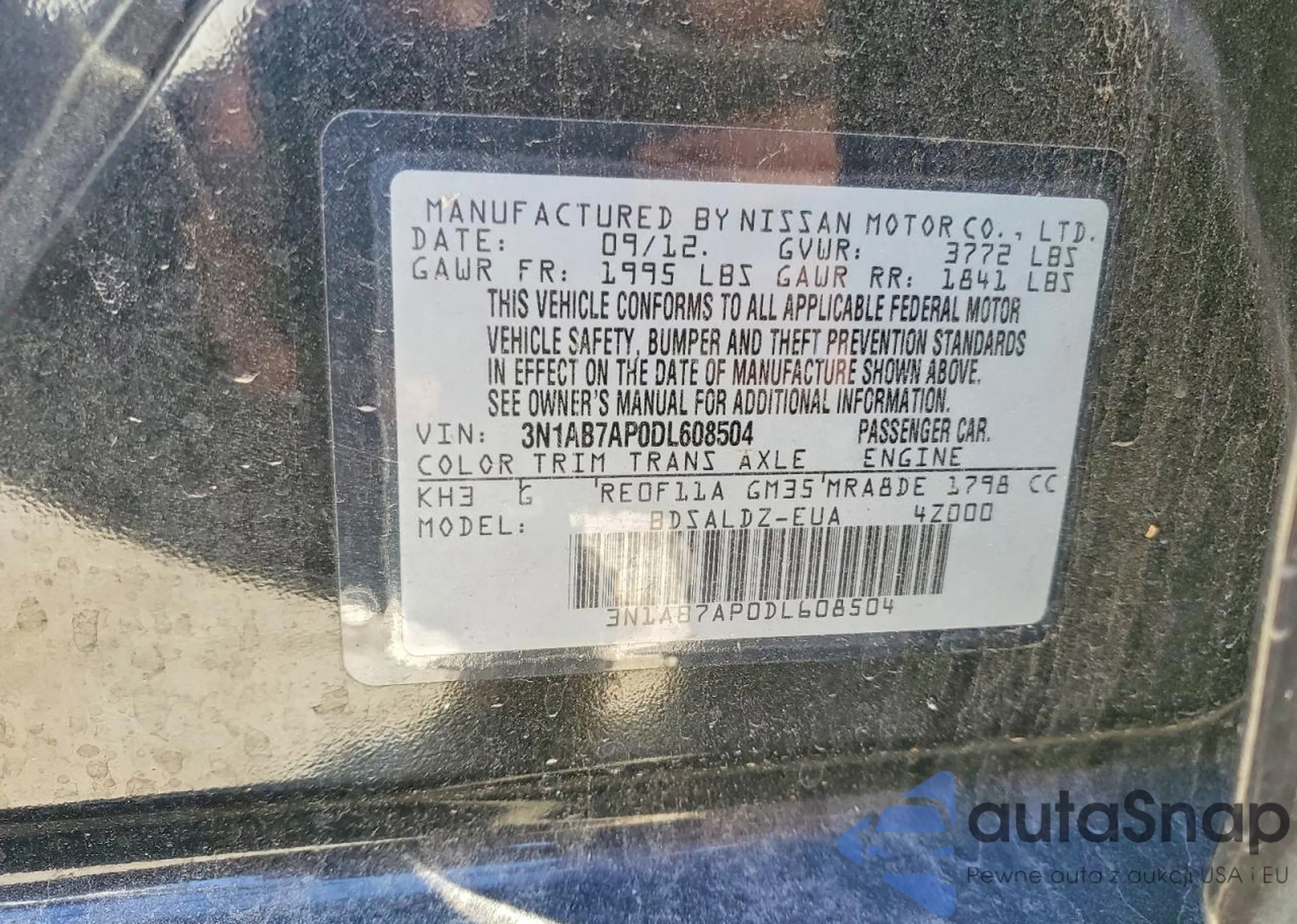 • VIN 3N1AB7AP0DL608504
