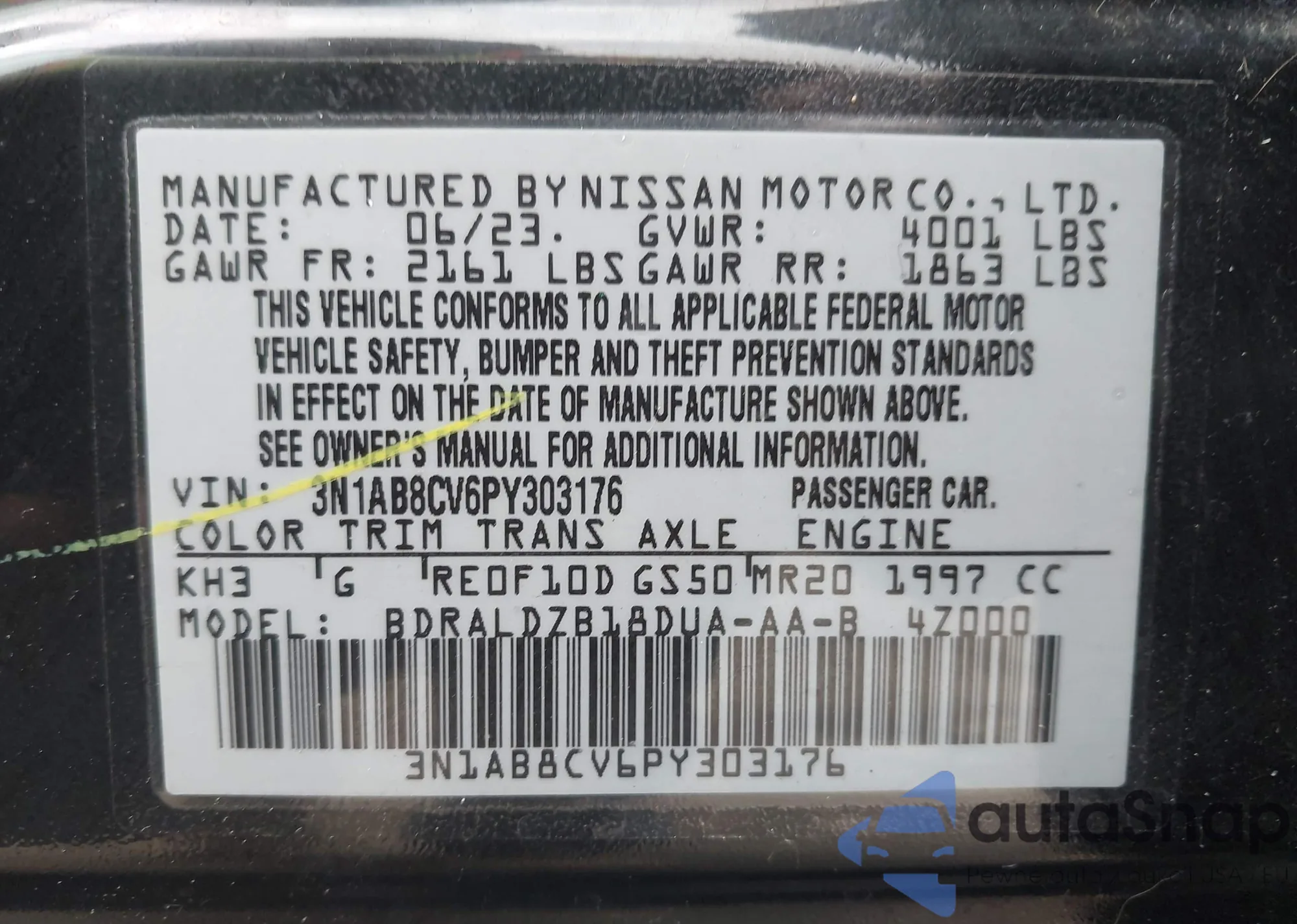 • VIN 3N1AB8CV6PY303176