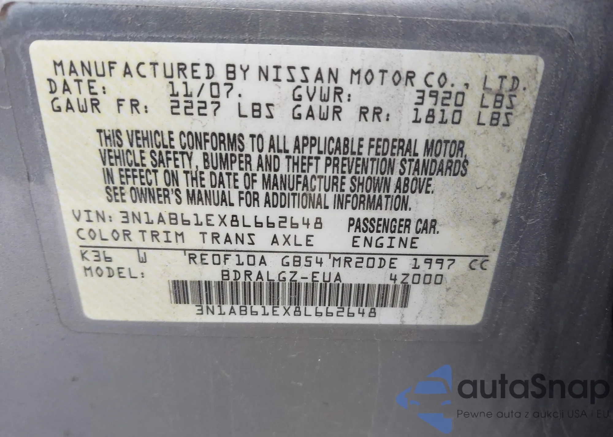 Kup Nissan Sentra VI (B16) z USA