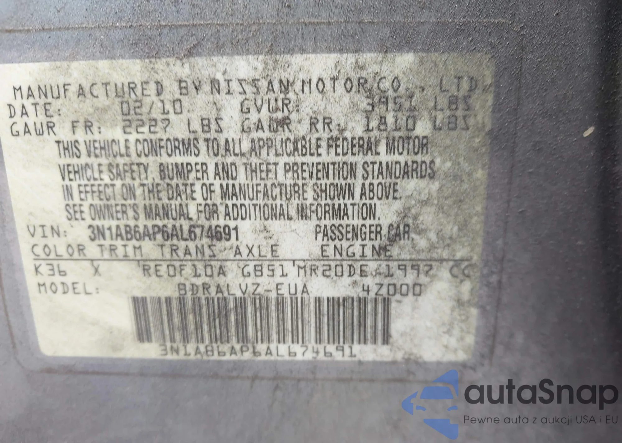 • VIN 3N1AB6AP6AL674691