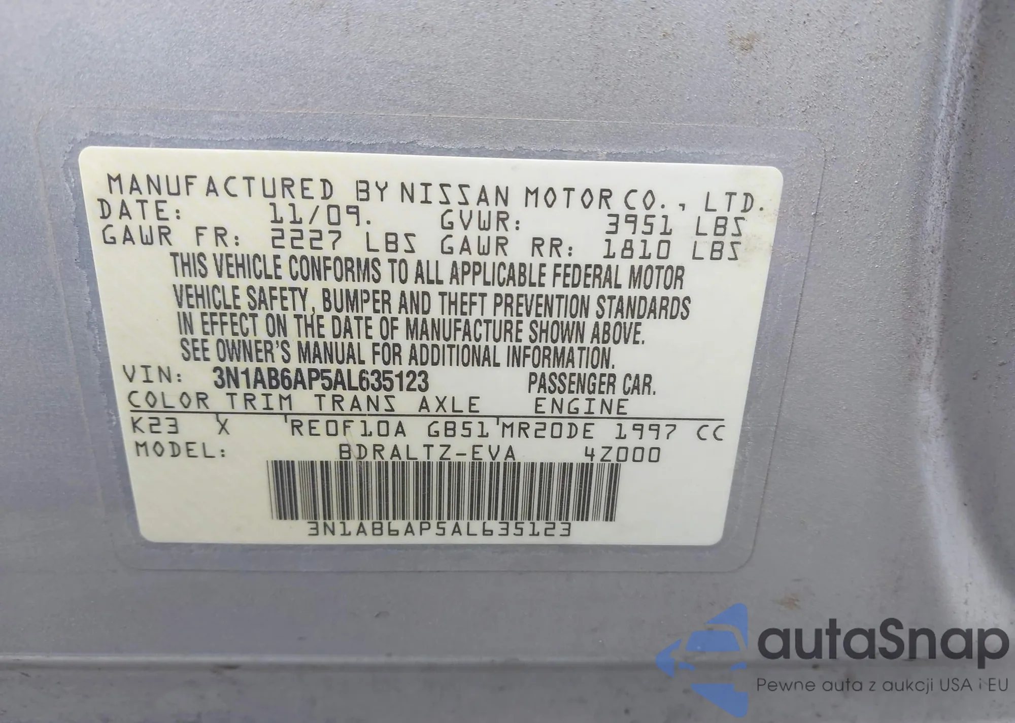 • VIN 3N1AB6AP5AL635123