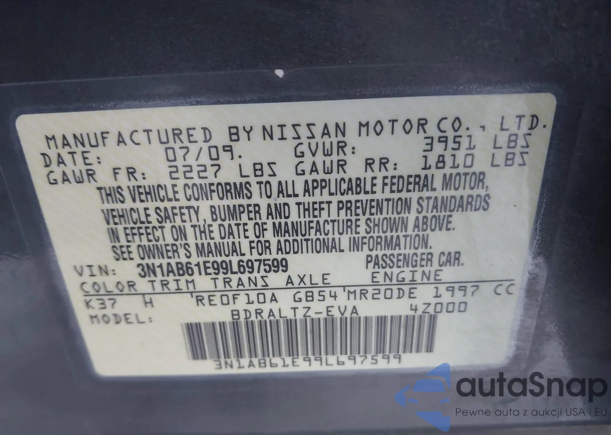 • VIN 3N1AB61E99L697599