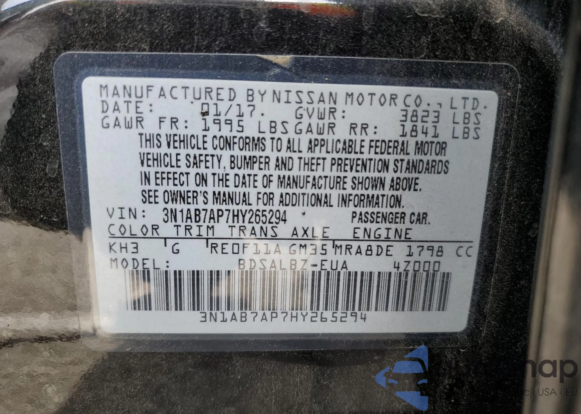 • VIN 3N1AB7AP7HY265294