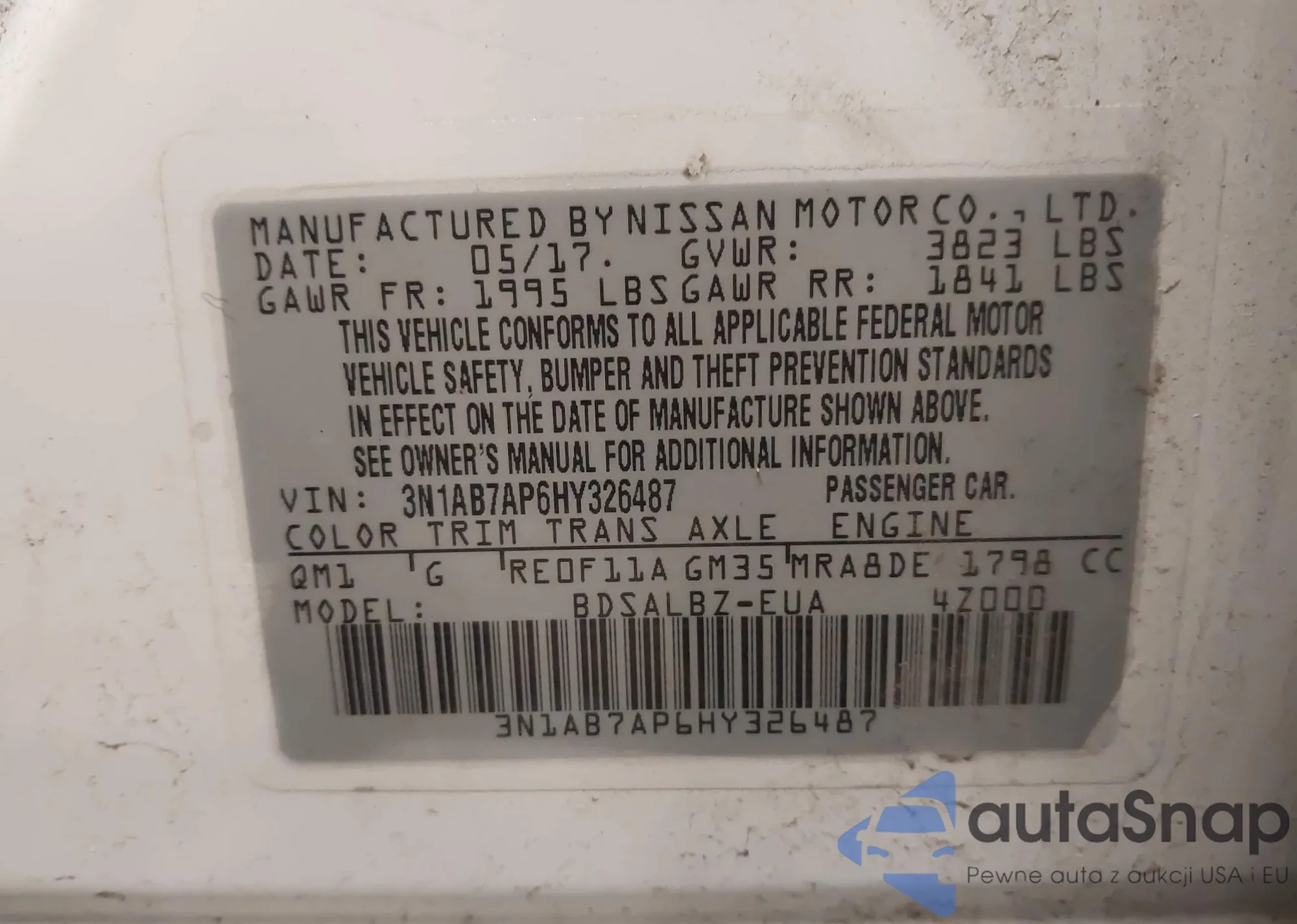 • VIN 3N1AB7AP6HY326487