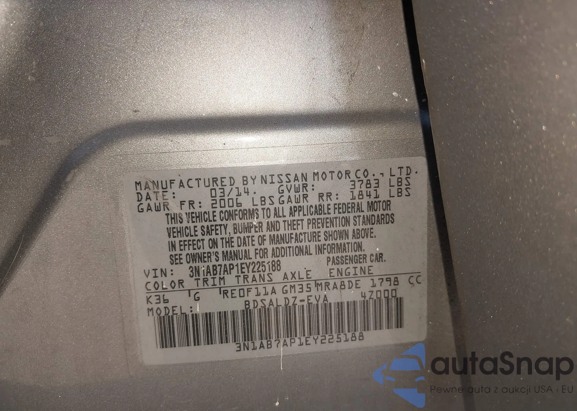 LOT: 44500712 VIN: 3N1AB7AP1EY225188