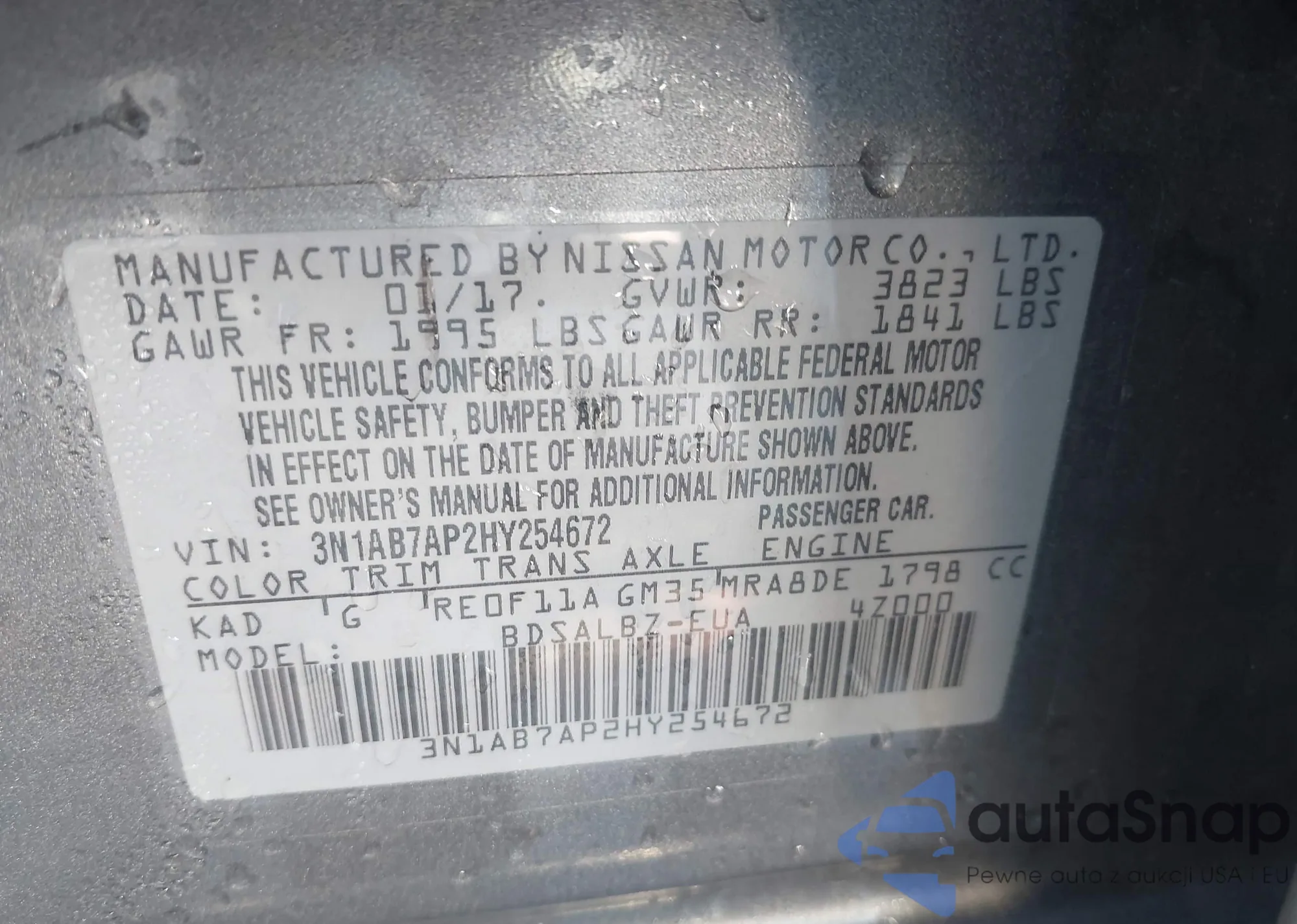 • VIN 3N1AB7AP2HY254672