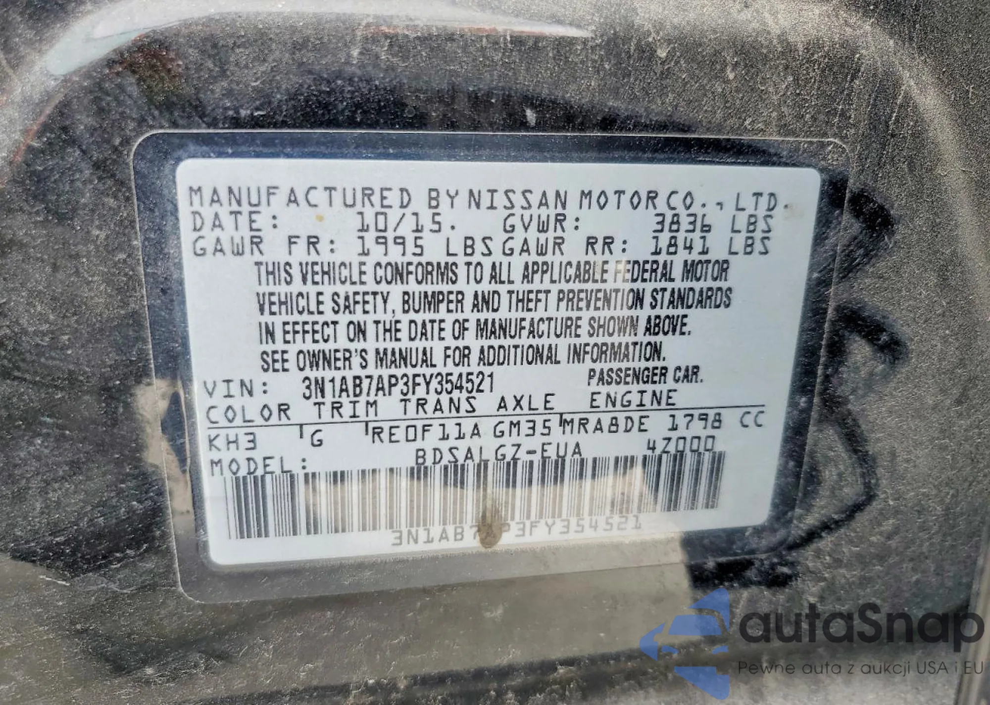 • VIN 3N1AB7AP3FY354521