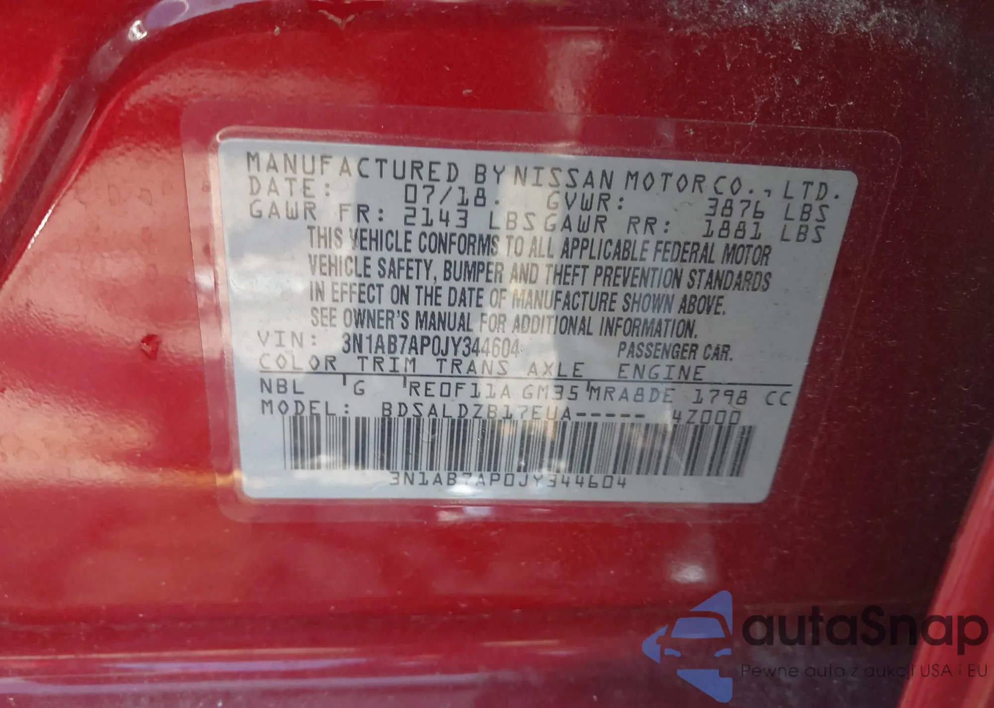• VIN 3N1AB7AP0JY344604