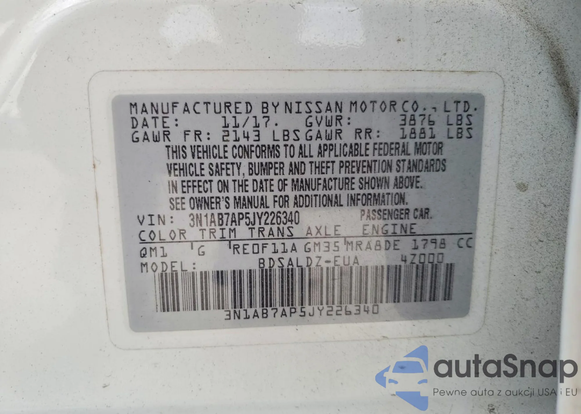 • VIN 3N1AB7AP5JY226340