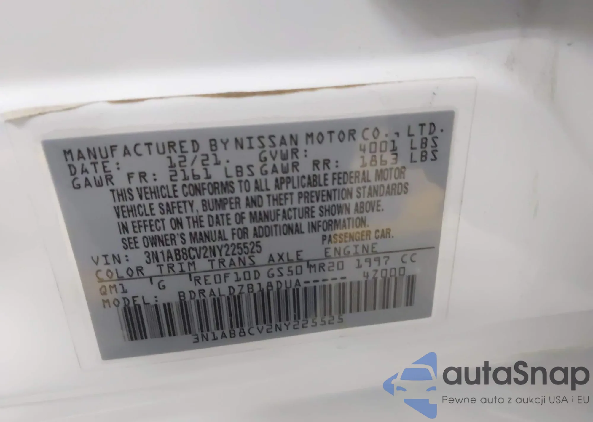 • VIN 3N1AB8CV9NY230981